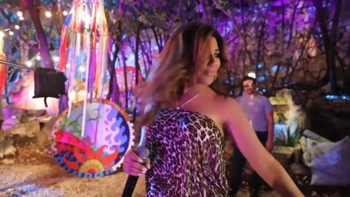 وأطلّت نجوى في الكواليس وهي تتصرّف على عفويتها، وقامت بممازحة فريق العمل ورقصت بحماس على أنغام الأغنية.