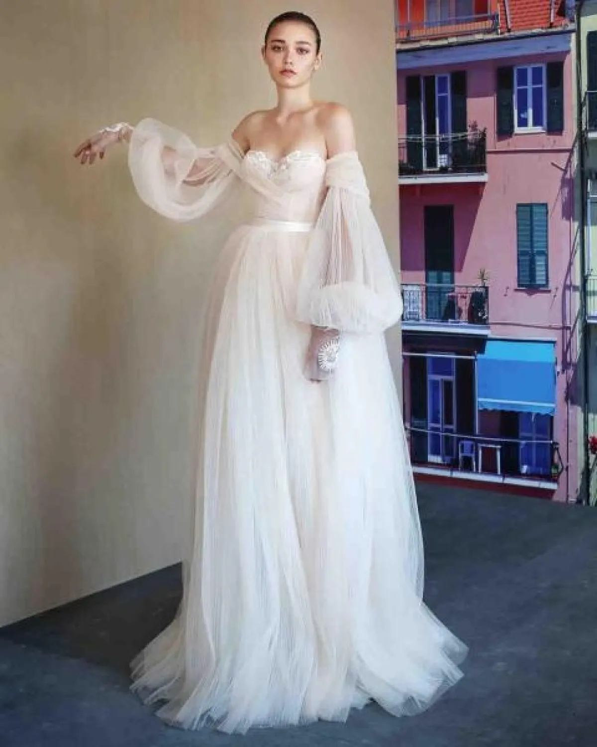 وقدمت الماركة قفازات طويلة تصل إلى أعلى، ويمكن تنسيقها مع فستان زفاف حمّالات أو Strapless، أما الفساتين بالأكمام المتوسطة أو الطويلة فتناسبها القفازات التي تنتهي عند معصم اليد.