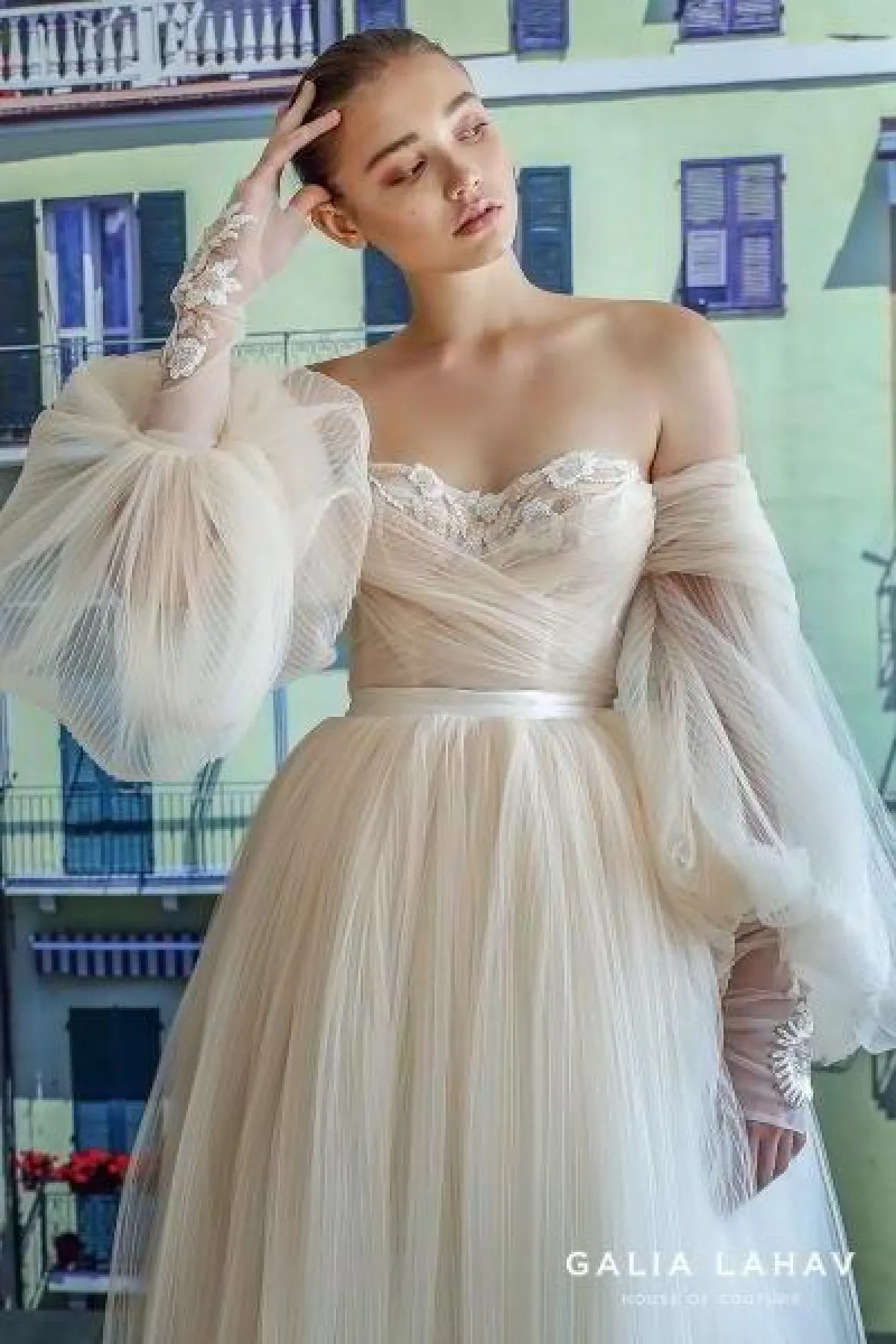 من أبرز ماركات فساتين الزفاف التي قدمت القفازات هذا العام، دار Galia Lahav، والتي تخلت عن الأقمشة الكلاسيكية في تصميم القفازات، وإستبدلتها بـ التول المزين بالورود البارزة، كما أن قفازات Galia Lahav لا تغطي الأصابع.