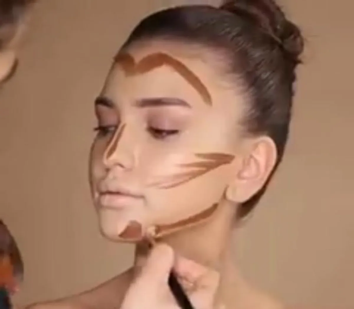 - الان طبقي تقنية الكونتور بلون بني شوكولاته بصيغته الكريمية لتنحيف الوجه.