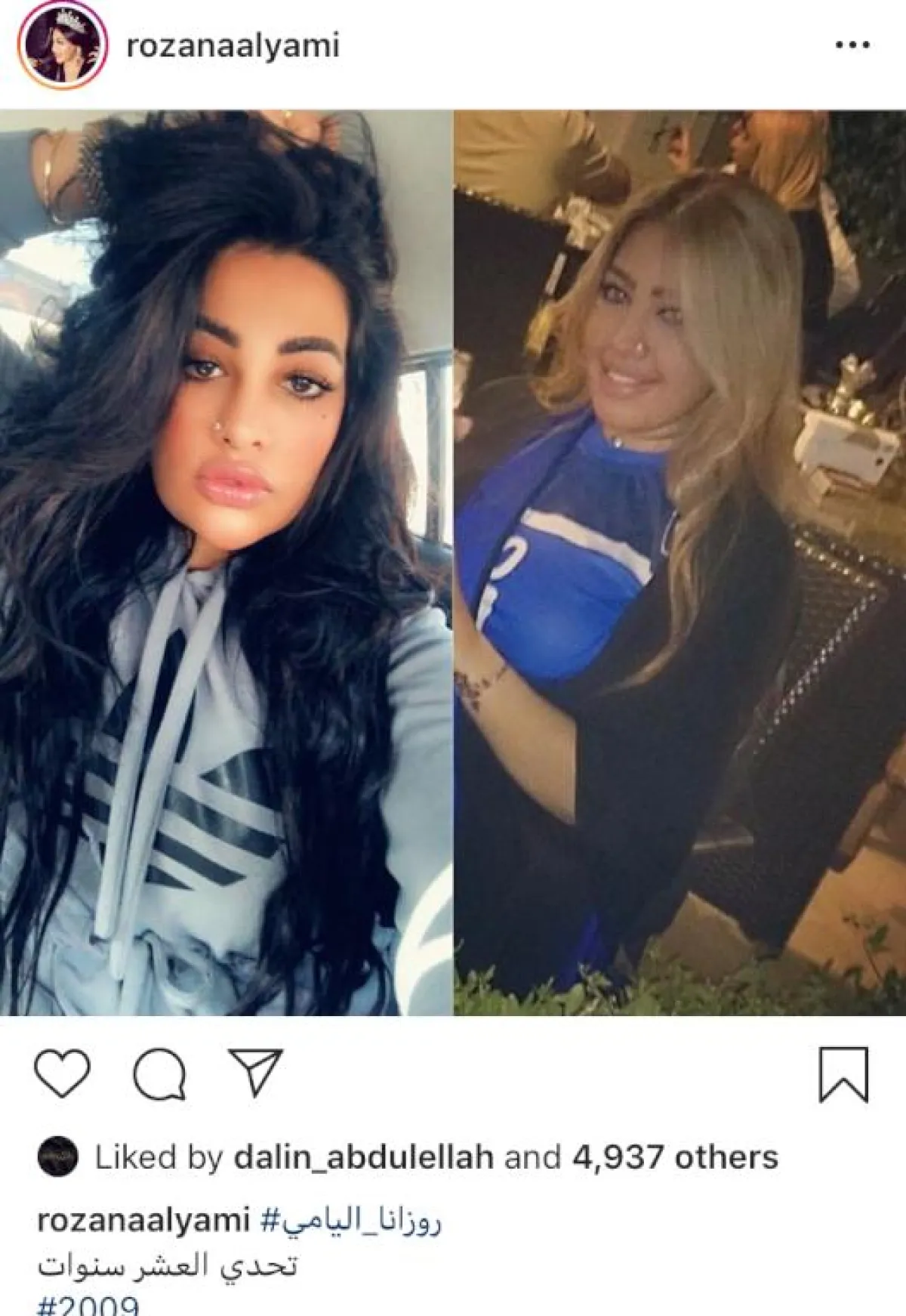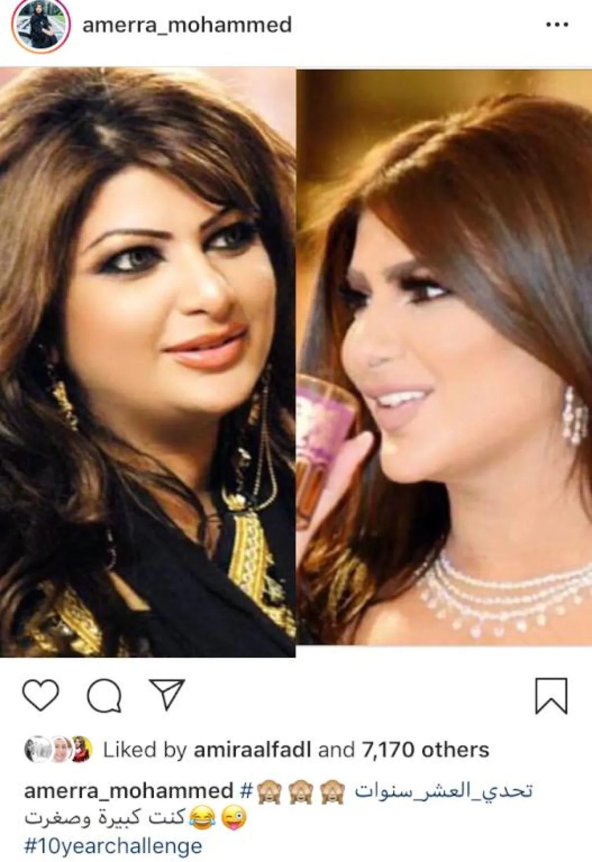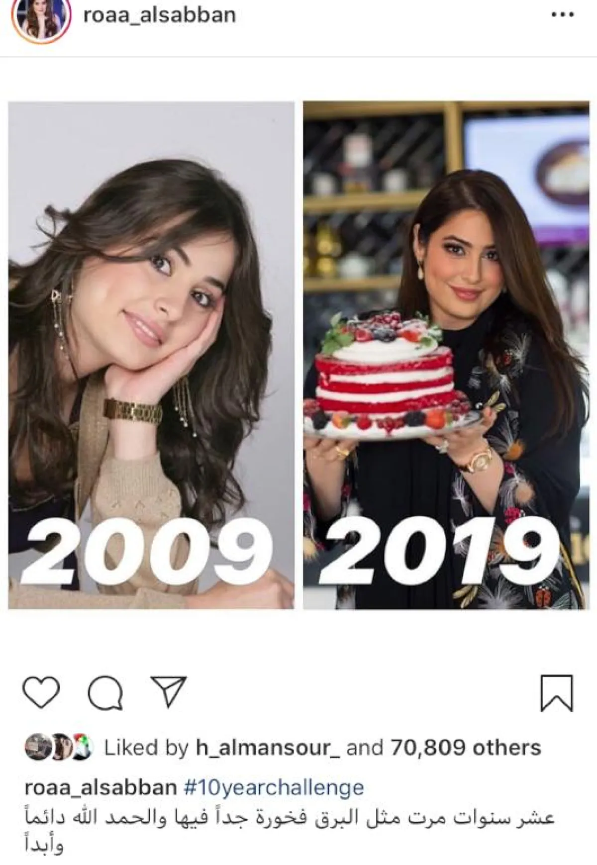 وأخيراً، وضعت الفنانة شيلاء سبت صورتين لها ضمن تحدي العشر سنوات دون تعليق.
