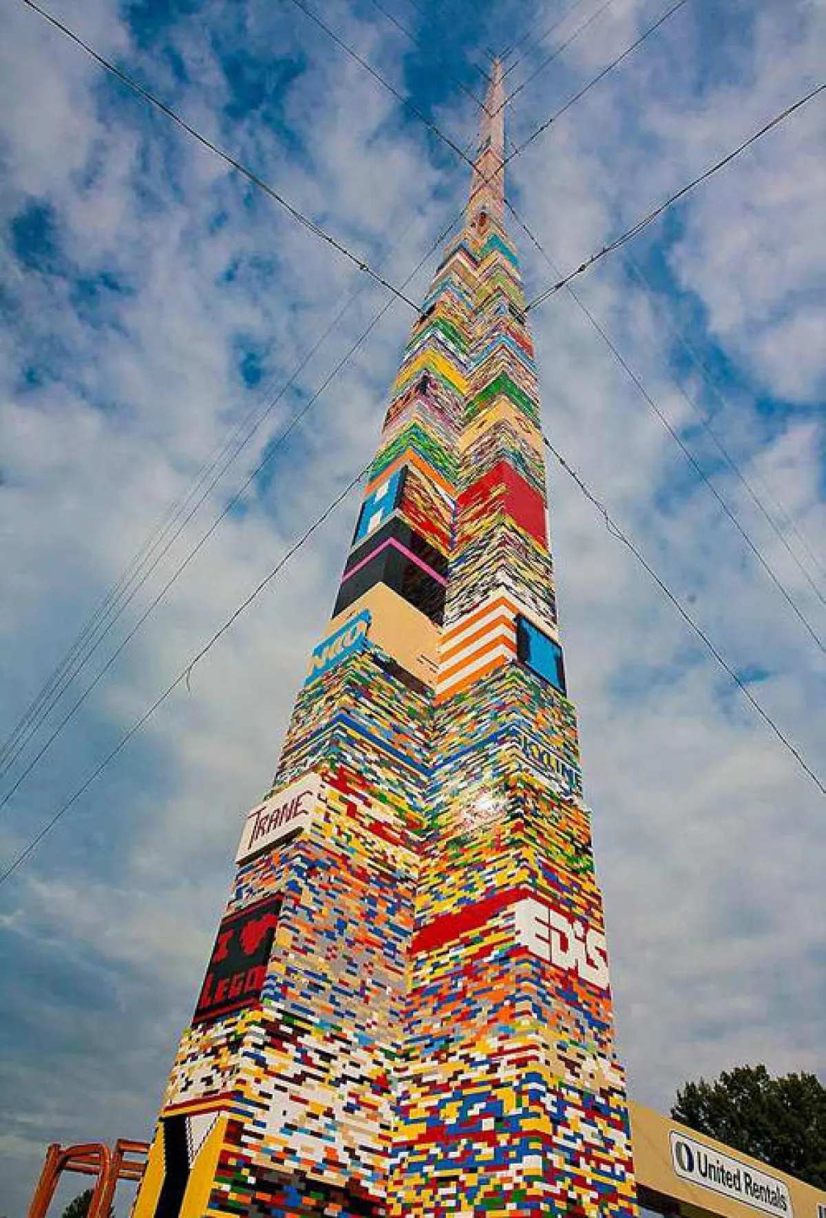 يعد البرج أطول 6 أقدام من المسجل مسبقاً في الموسوعة، والذي تم بناءه في العاصمة التشيكية "براغ"، وقد تبرع الطلبة وأفراد مدينة "ويلمنغتون" الأميركية بمكعبات الليغو المستخدمة في بنائه.