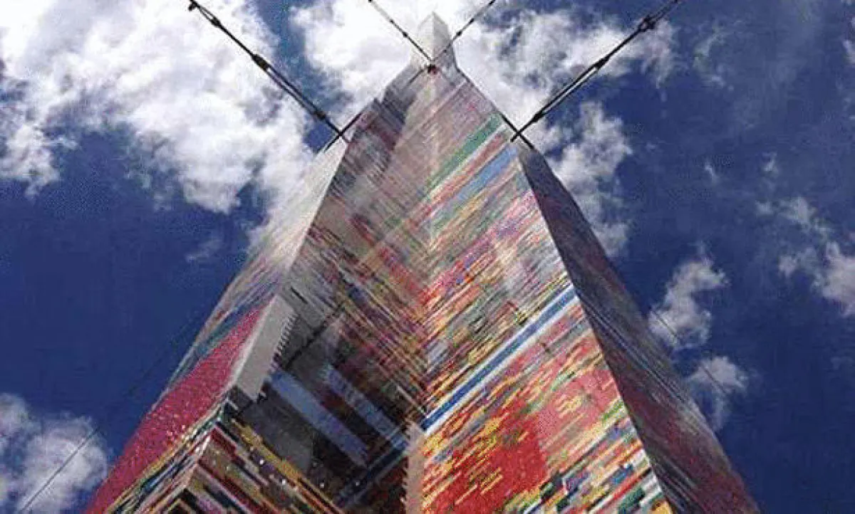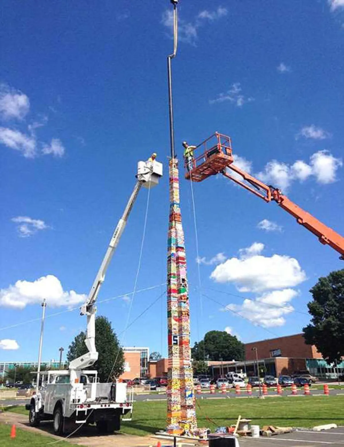 البرج الضخم يبلغ ارتفاعه 112 قدماً وشارك في بنائه طلبة من 32 مدرسة تخلوا عن جزء من إجازتهم الصيفية للمشاركة في إكمال المشروع.