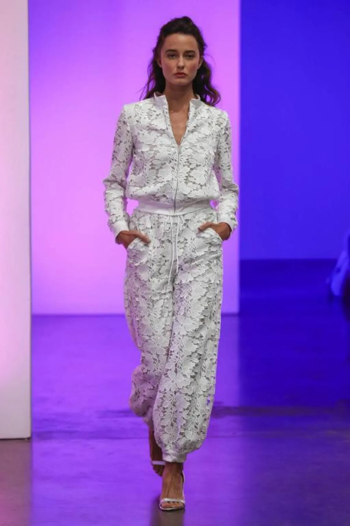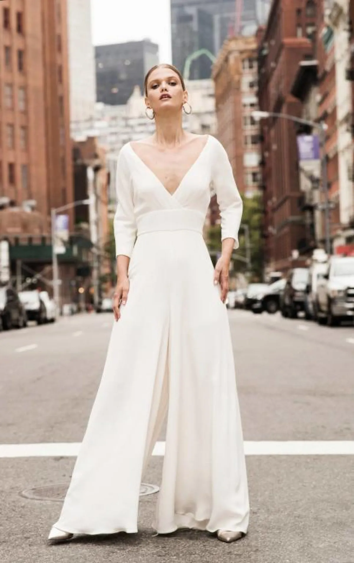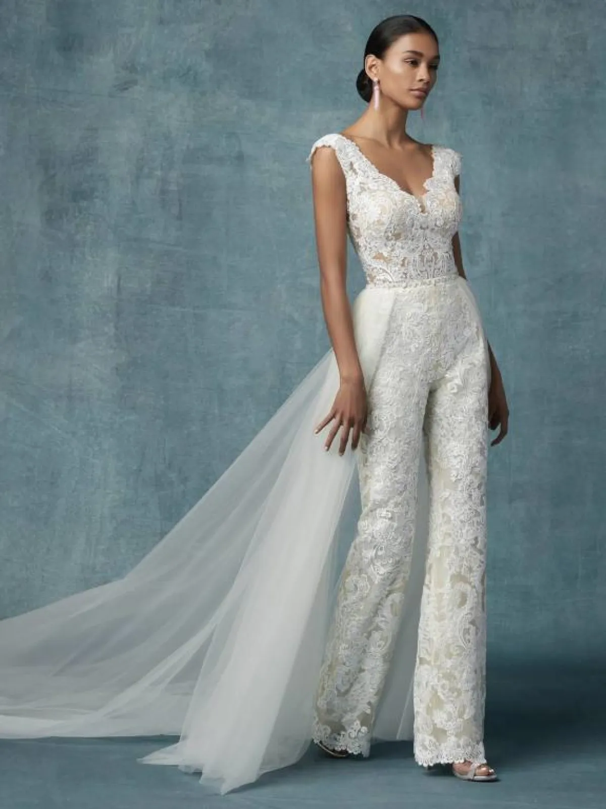 وأضافت ماركة Ronald Joyce الوشاح الطويل من الخلف مع الفستان الـHalter لإطلالة راقية وجذابة.