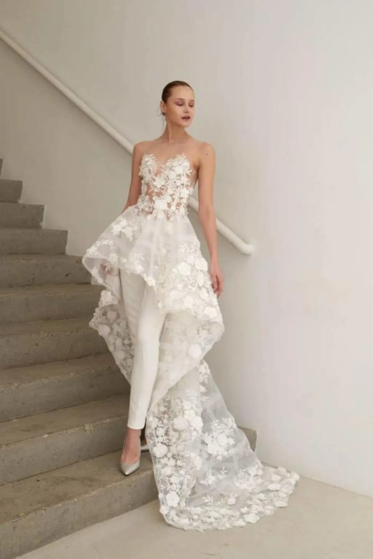 وتزينت بعض فساتين الـHalter بتفاصيل بارزة مثل الفستان المزين بالورود البيضاء من Chantal Romano، وفستان Julie Vino بفيونكة الرقبة.