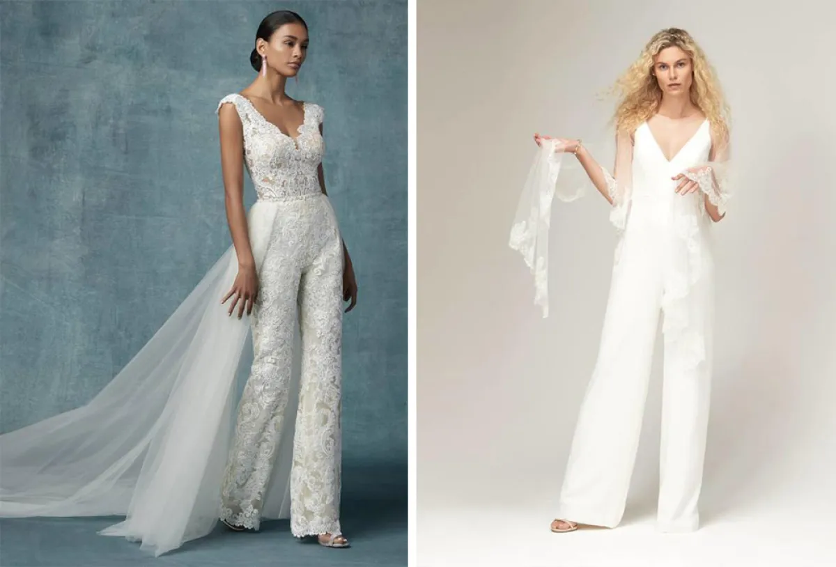 أيضاً قدمت بعض الماركات فساتين Halter بقصّة ضيقة تبرز إنحناءات الجسم مثل فساتين Justin Alexander، و Stella York.