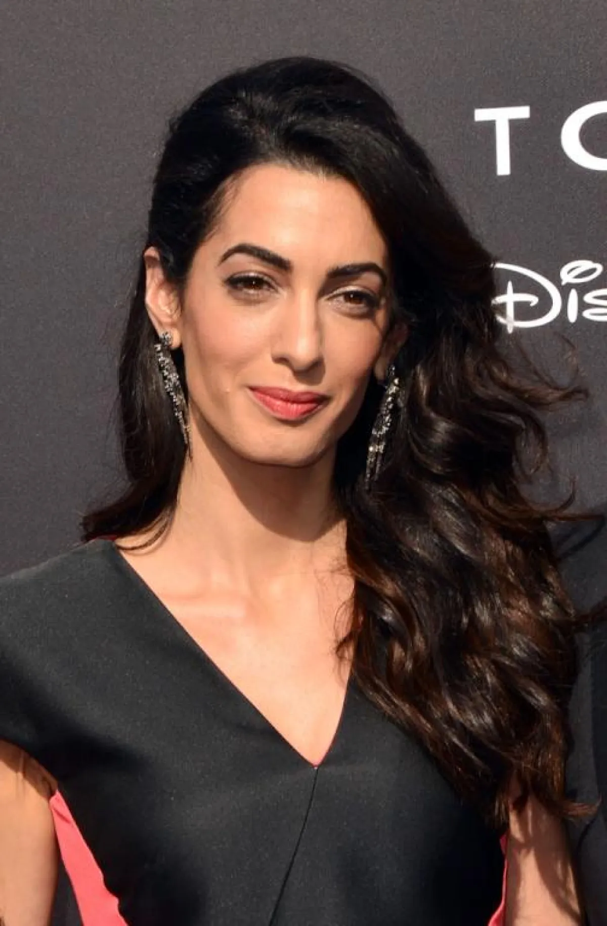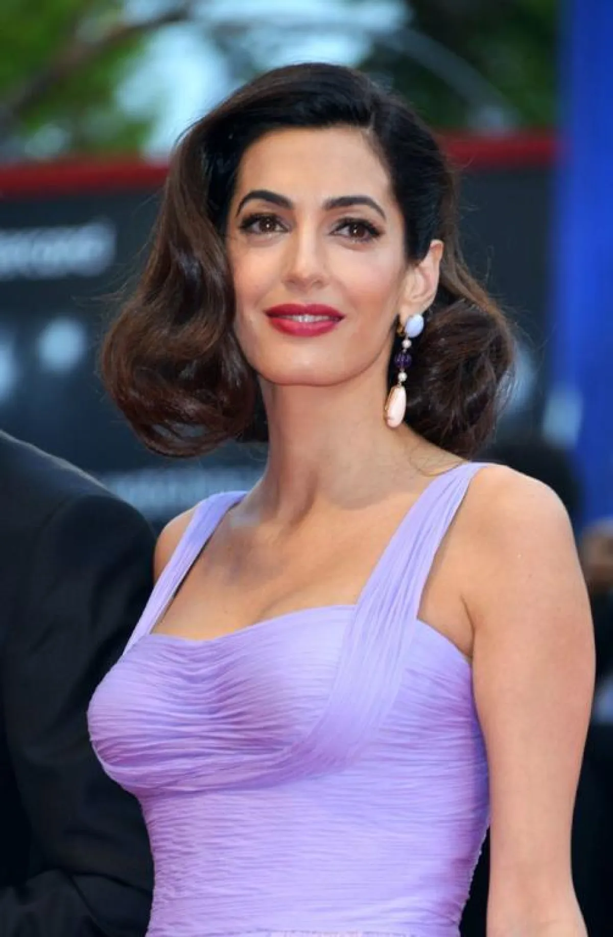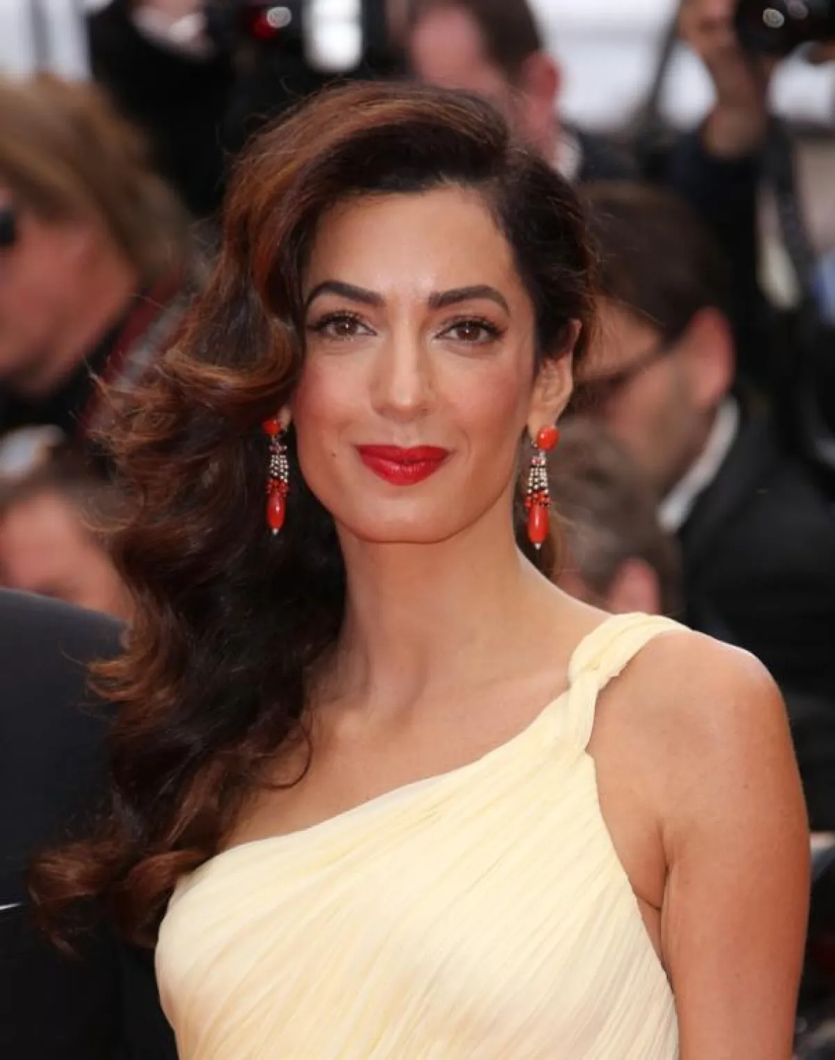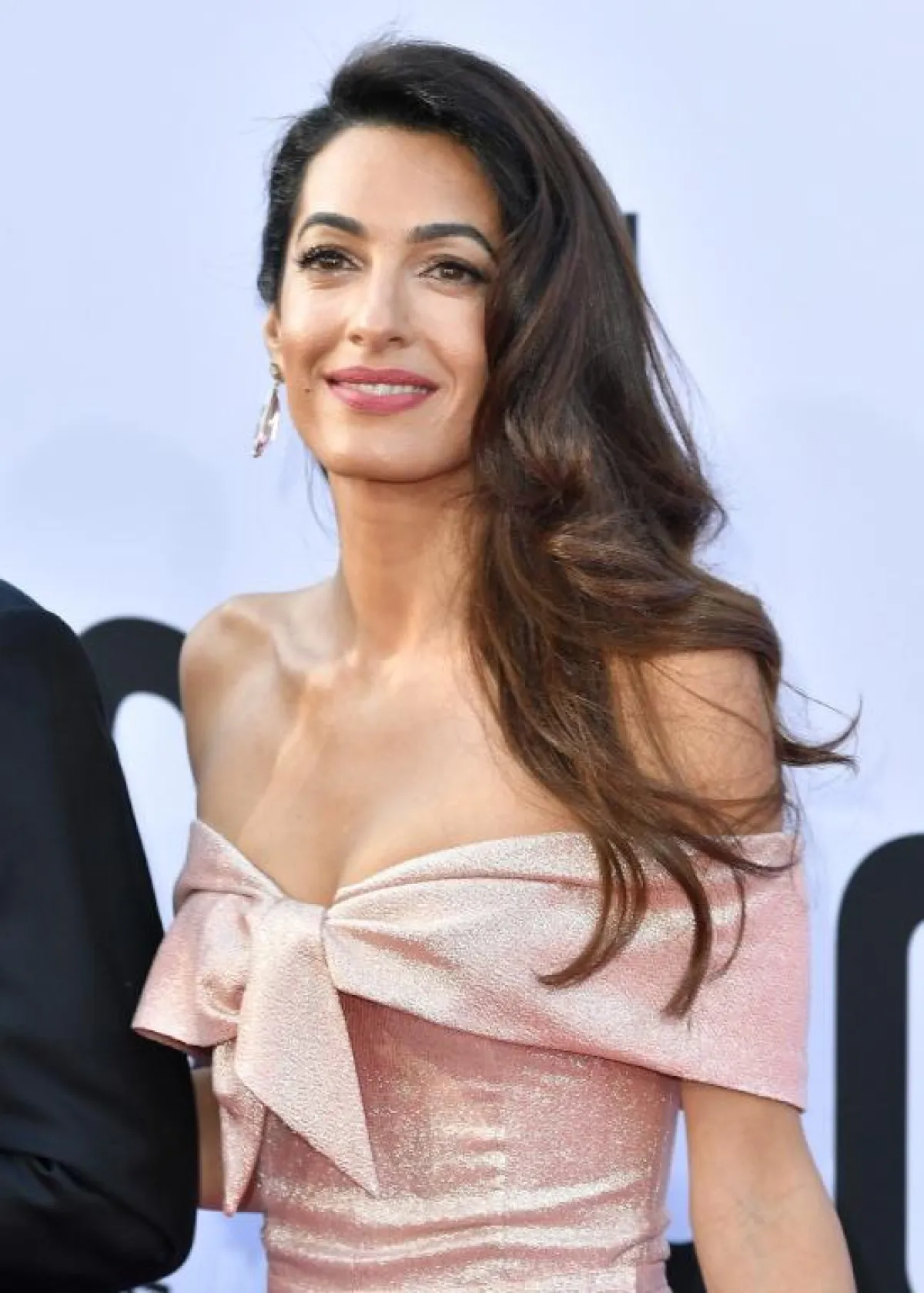غالباً ما تختار أمل كلوني تسريحة الشعر المنسدل، مع الغرة الجانبية. فشكل وجهها الطويل والنحيل، يحتاج إلى خصلات تغطي وتمنحه مظهراً ممتلئاً بعض الشيء. كما أن الغرة التي تغطي نصف جبينها تقريباً، تساعد على التقليل من طول وجهها.