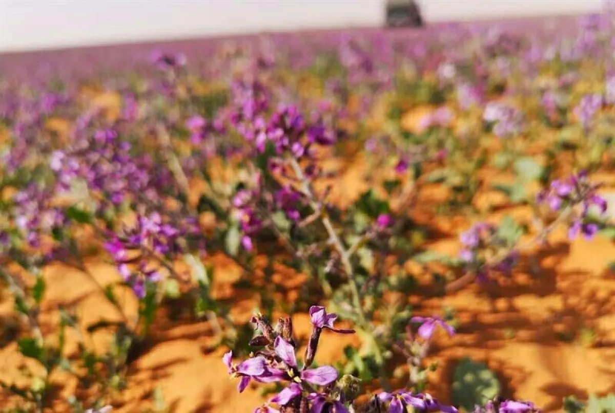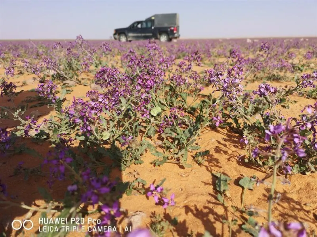عندما تكتسي رمال الصحراء بالزهور، وتحديدًا زهور الخزامى فإنّها ستبدو بأبهى صورة، وأجمل هيئة، ورمال محافظة رفحاء كان لها نصيب من هذا الجمال الساحر؛ حيث اكتست بثوب من أزهار الخزامى البنفسجية والتي غطّت أغلب رمالها.