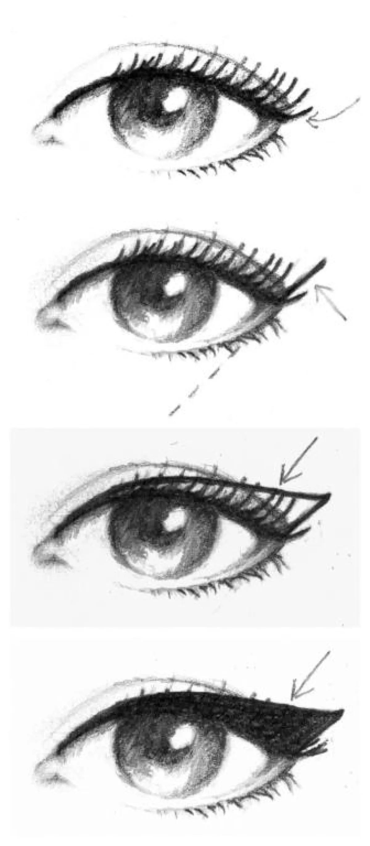 -ارسمي عينيك بالكحل الجاف، إذا كنت تخشين الوقوع في الخطأ عند رسم العين. وبعدها، ارسمي فوق الكحل بـ الأيلاينر.