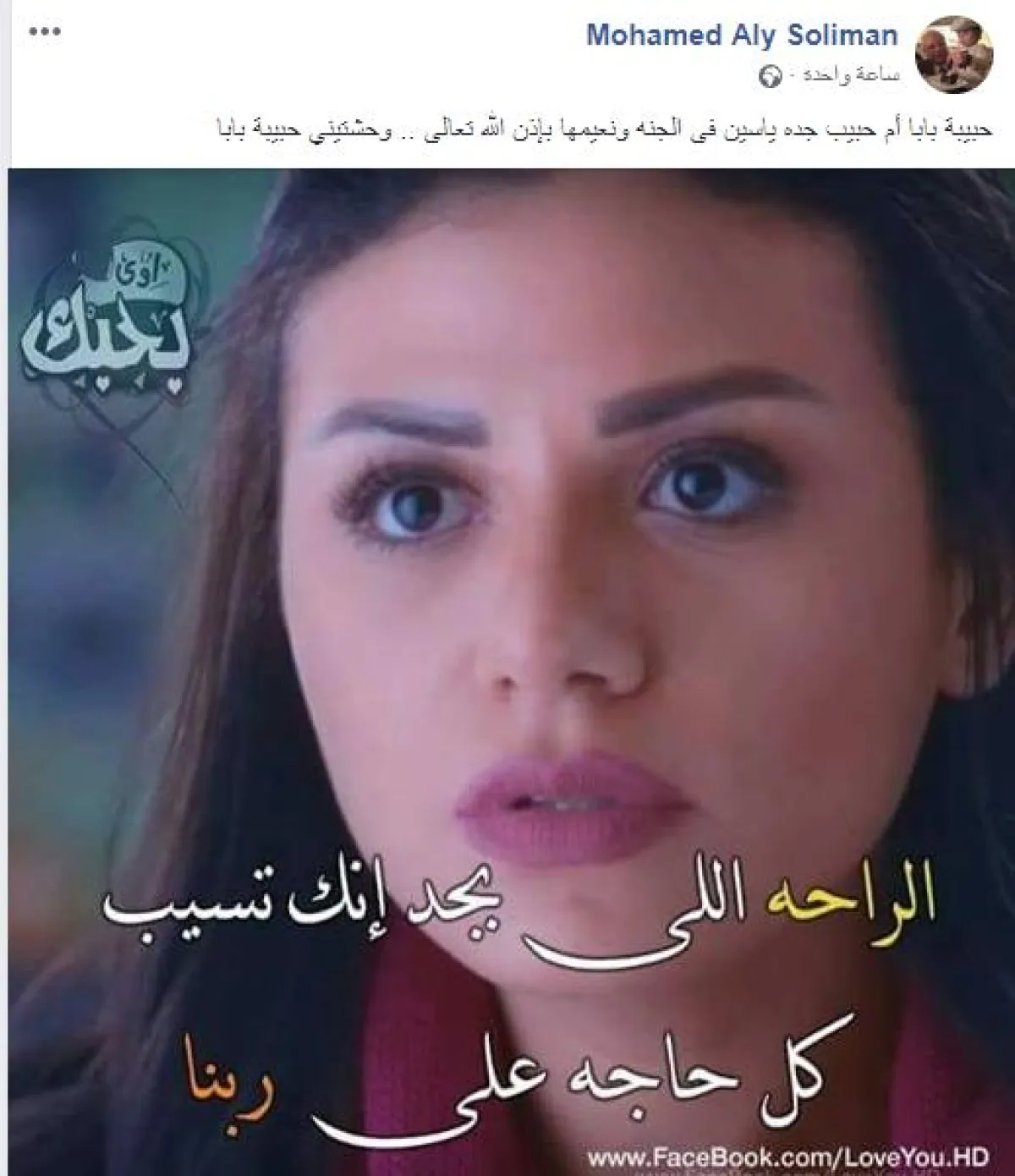 وبعدها تذكر ابنته الراحلة غنوة، وأعاد نشر صورة لها وعلق عليها قائلاً: "حبيبة بابا أم حبيب جده ياسين فى الجنه ونعيمها بإذن الله تعالى .. وحشتيني حبيبة بابا".