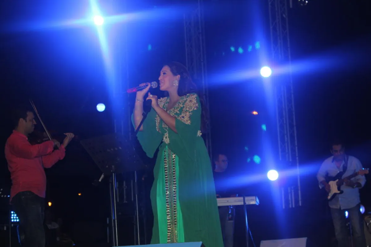 شيرين التي تهوى الفساتين القصيرة كفساتين الأميرات، ارتدت تصميماً أبيض طويلاً، زينته بحزام من الجلد الأسود، خلال حفلة أحيتها في مهرجان "أصوات نسائية" في تطوان، وتميزت إطلالتها بالبساطة والهدوء.