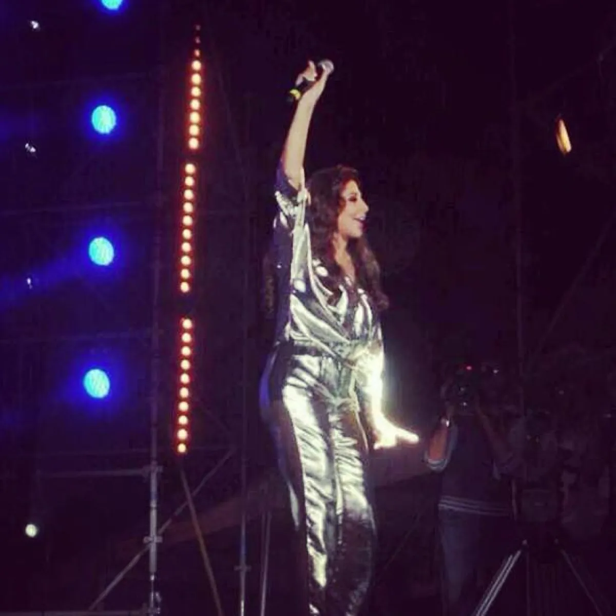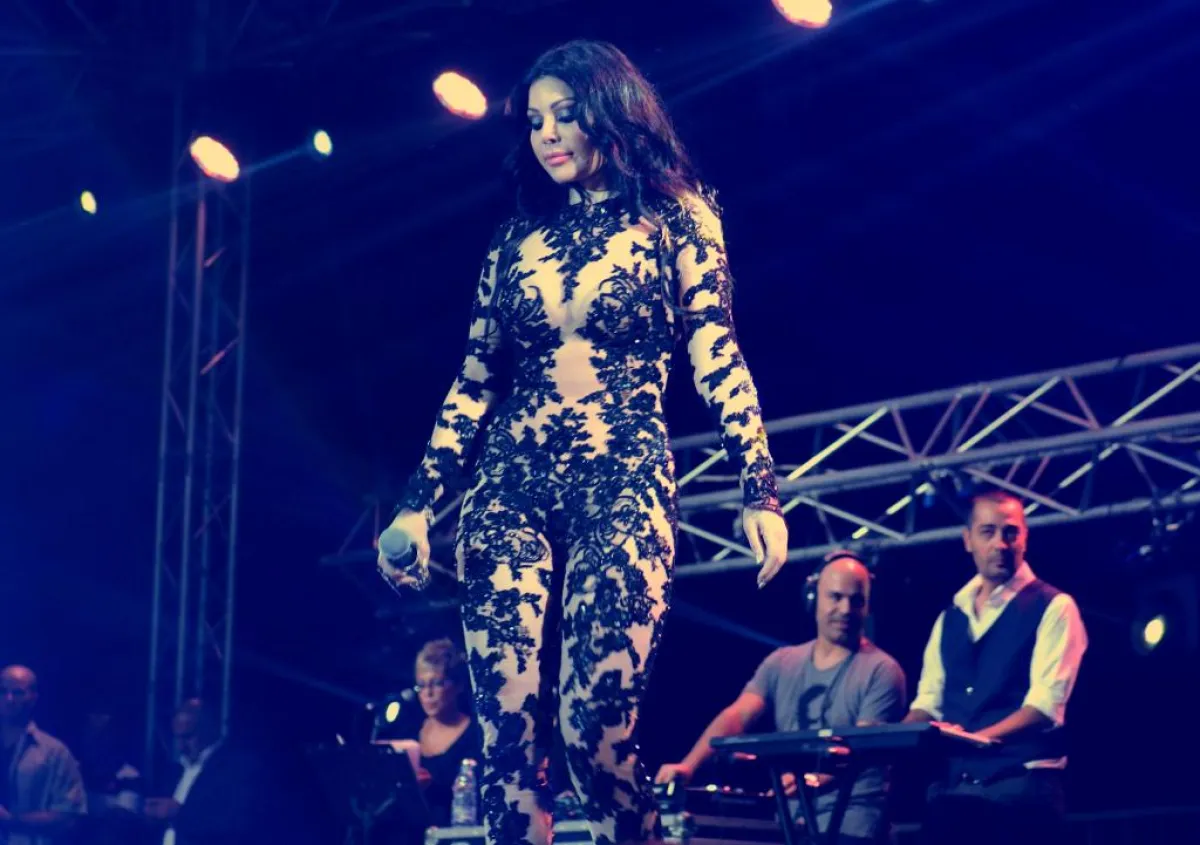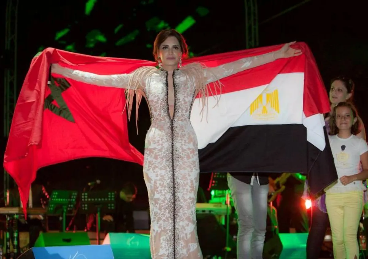 ميريام فارس بدورها لم تخرج عن النمط الجريء الذي تختاره عادة لإبهار جمهورها، فأطلت بجامبسوت باللون الأزرق البرّاق من تصميم رامي القاضي، وذلك خلال إحيائها حفلة ضمن فعاليات مهرجان "المتوسطي للناظور" في المغرب.