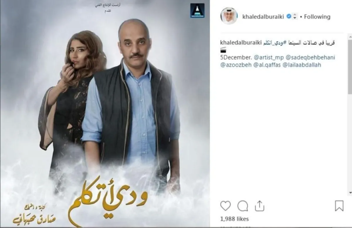 أعلن الفنان خالد البريكي عبر صفحته في "إنستقرام"، أنه سيتم عرض "ودي أتكلم" وهو أول فيلم سينمائي كويتي في الرياض، كاتباً: "خلال هذا الأسبوع، أول فيلم سينمائي كويتي سيعرض في دور السينما السعودية".