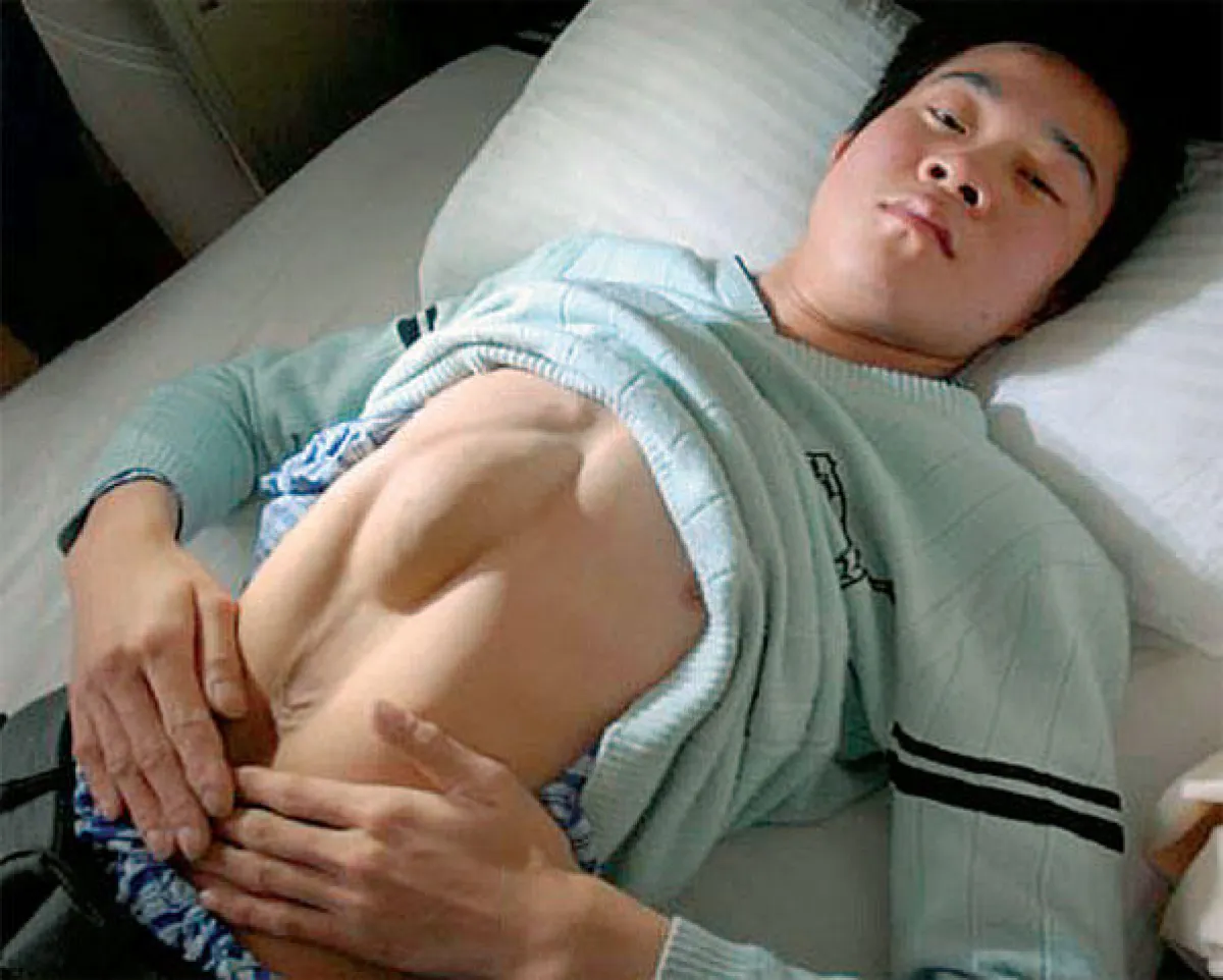 يعاني شاب صيني يبلغ من العمر 24 عامًا من ضيق التنفس بشكل مستمر، وذلك لوجود قلبه في بطنه، وهذه الظاهرة الغربية يمكن أن تحدث لكل 5 من بين مليون طفل، ويموت غالبيتهم بعد الولادة، لكن الشاب هوانغ مينغ ظل على قيد الحياة.