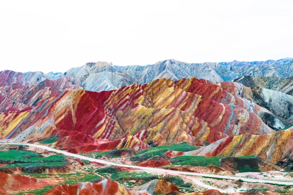 تقع هذ الجبال في مقاطعتي سونان ولينزي، بمدينة زانغيي في قانسو الصينية. وتمتدُّ على مساحة 322 كيلومترًا مربعًا. وقد تراكمت الأحجار الرملية الحمر والرواسب المعدنية في الحديقة الجيولوجية الصينية لأكثر من 20 مليون سنة، ما تسبَّب في إعداد هذه الطبقات الأخَّاذة.