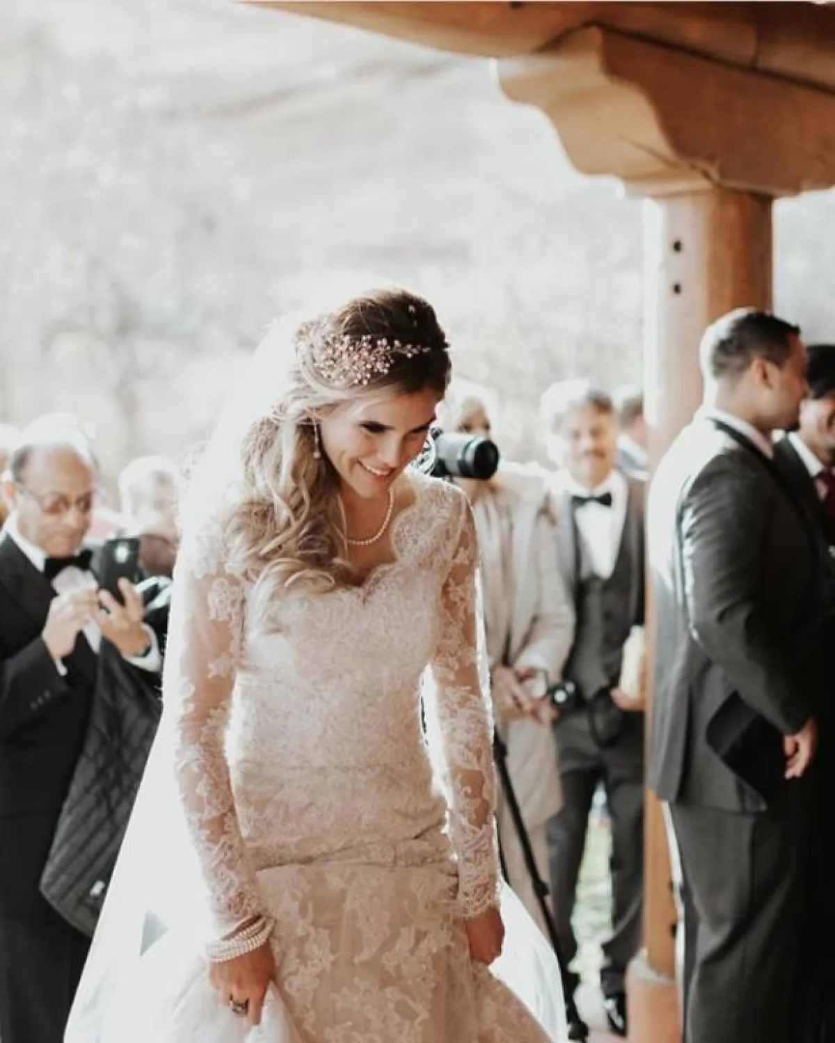 لفتنا كذلك التاج الفخم المرتفع، والذي قد يكون خيارًا جيدًا للعروس القصيرة، يمنحها اطلالة فخمة وراقية، وطولًا مضاعفًا، اختاريه مع أقراط مستوحاة من التاج نفسه، بخاصة وإن كنتِ تتمتعين بوجه نحيف، فالأحجار الكبيرة والفخمة لن تضايقكِ.
