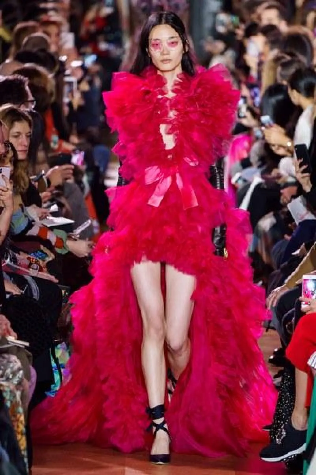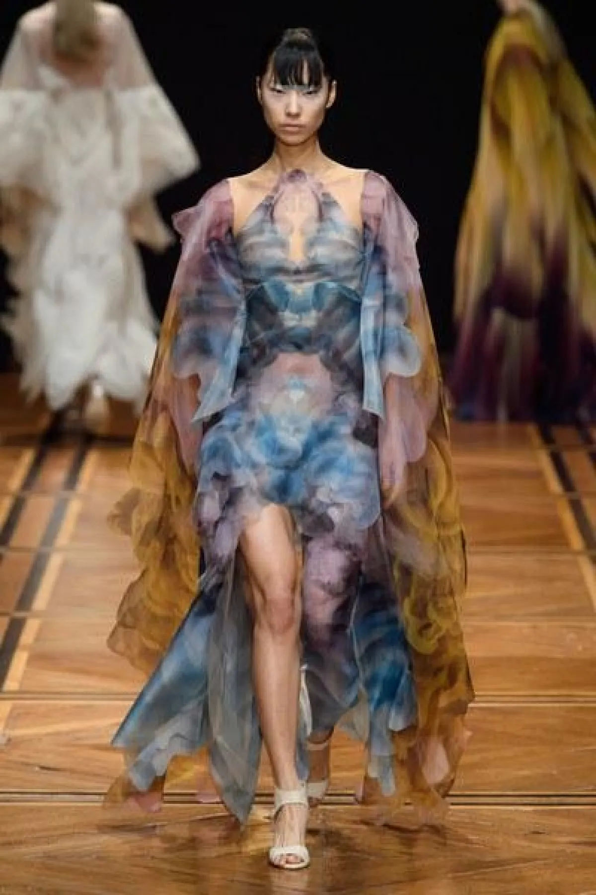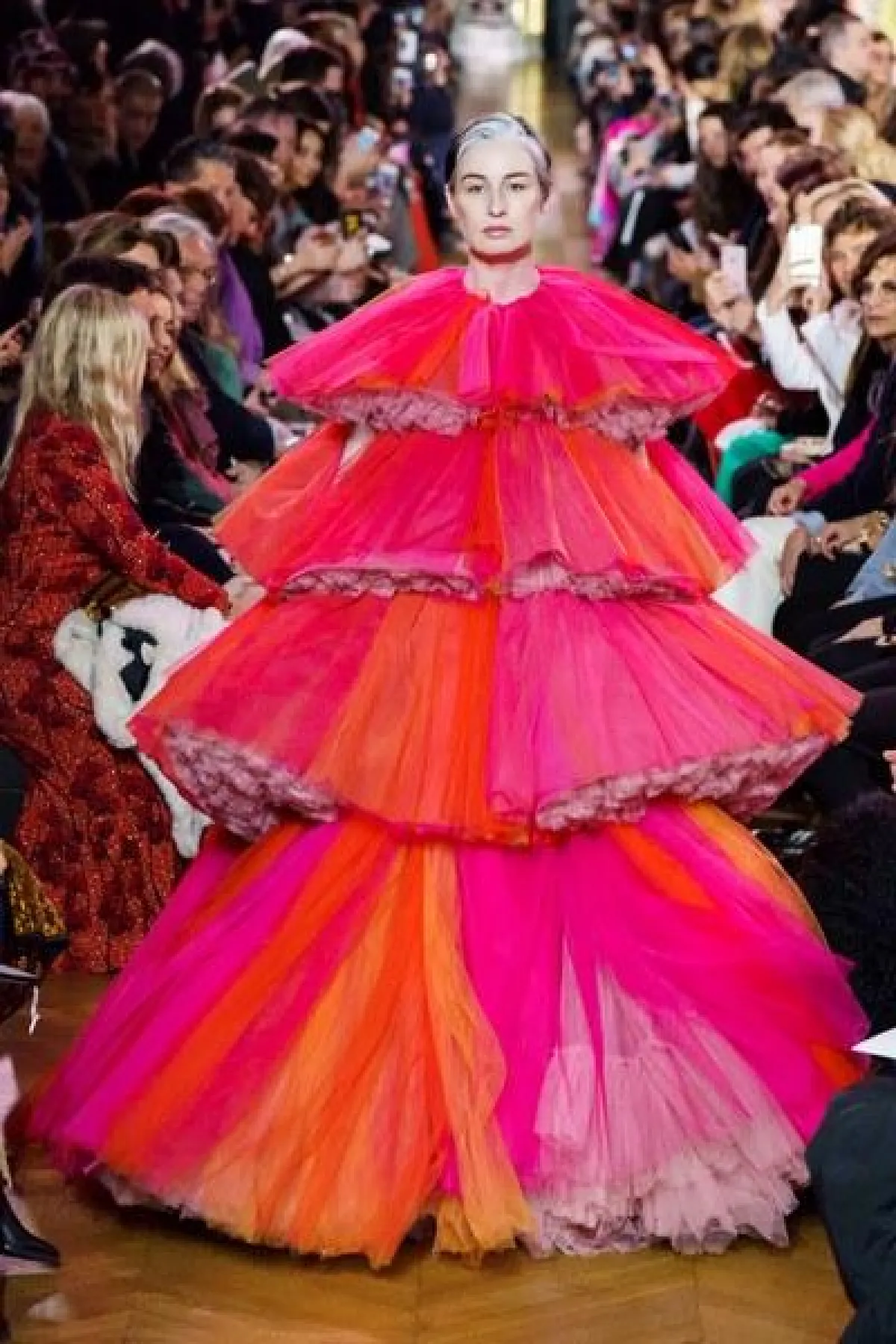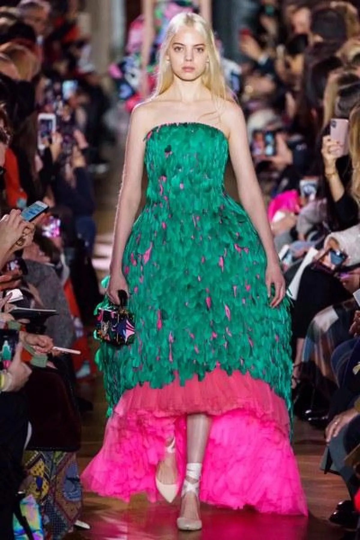 جاءت مفعمة بالحياة والروح المرحة. وقد رأيناها من خلال فساتين السهرة الراقية لربيع 2019 الخاصة بعلامتَي سكياباريلي Schiaparelli، وآيرس فإن هربن Iris Van Herpen، وكذلك لدى جمباتيستا فالي Giambattista Valli.