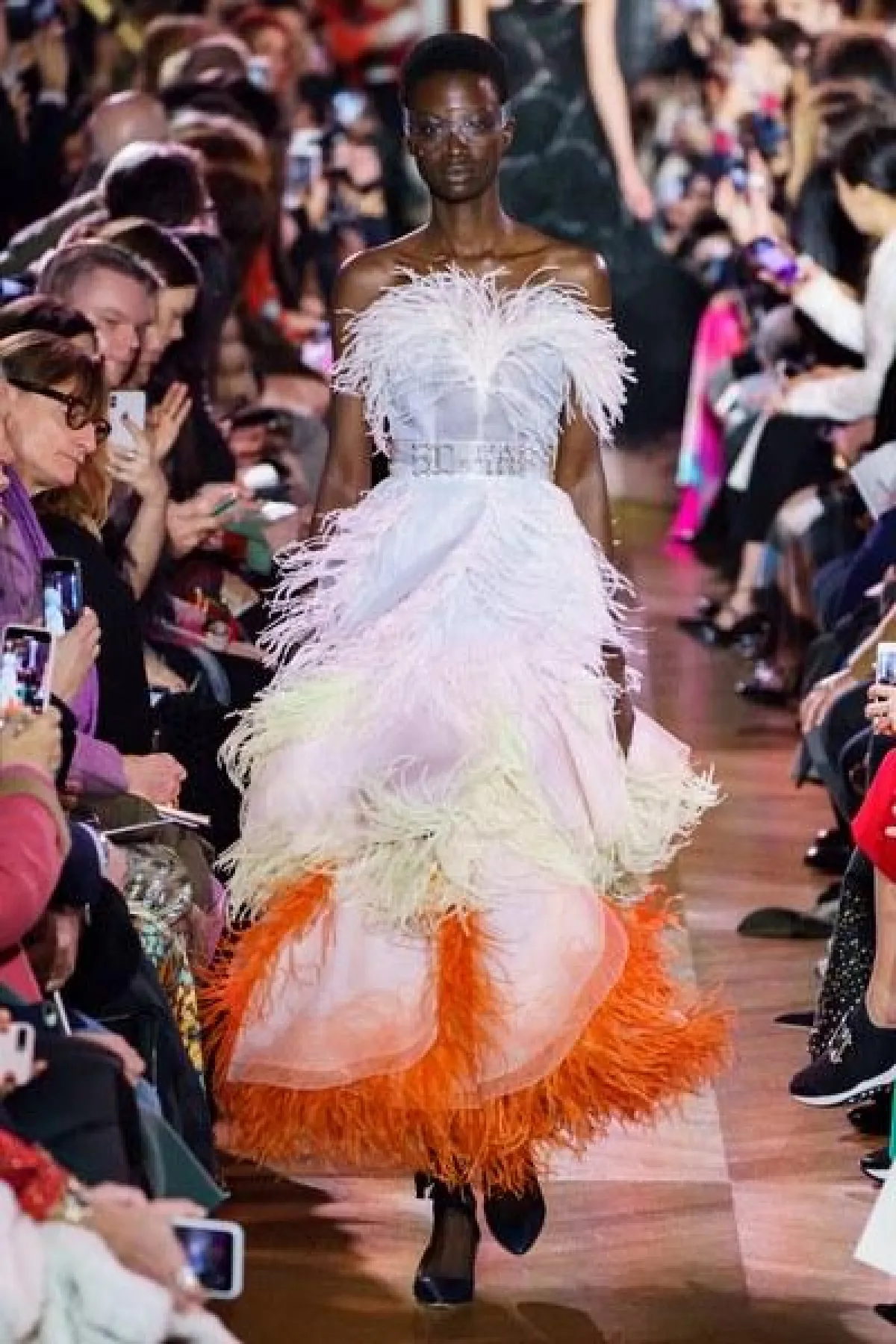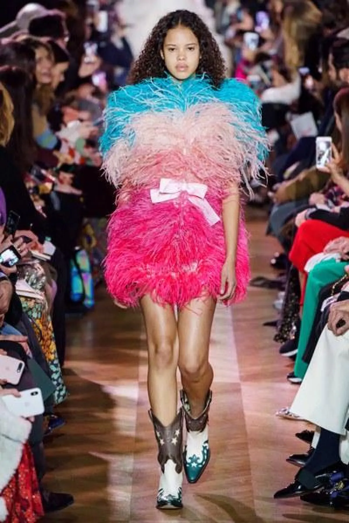 ما زال الريش مهيمناً على منصات عروض الأزياء العالمية، رصدناه خلال أول أيام أسبوع الموضة للهوت كوتور لربيع 2019 بإطلالة كاملة لدى سكياباريلي Schiaparelli وجمباتيستا فالي Giambattista Valli، ومن خلال التفاصيل الظاهرة على أطراف فساتين كريستيان ديورChristian Dior.