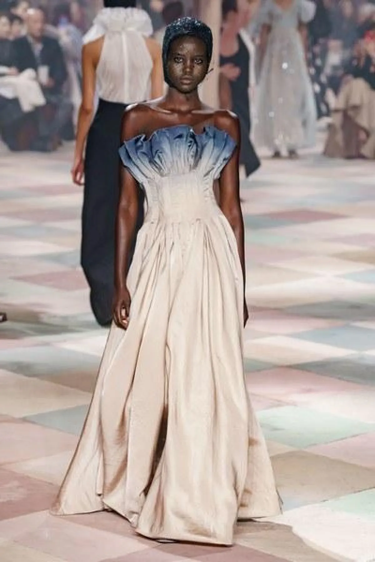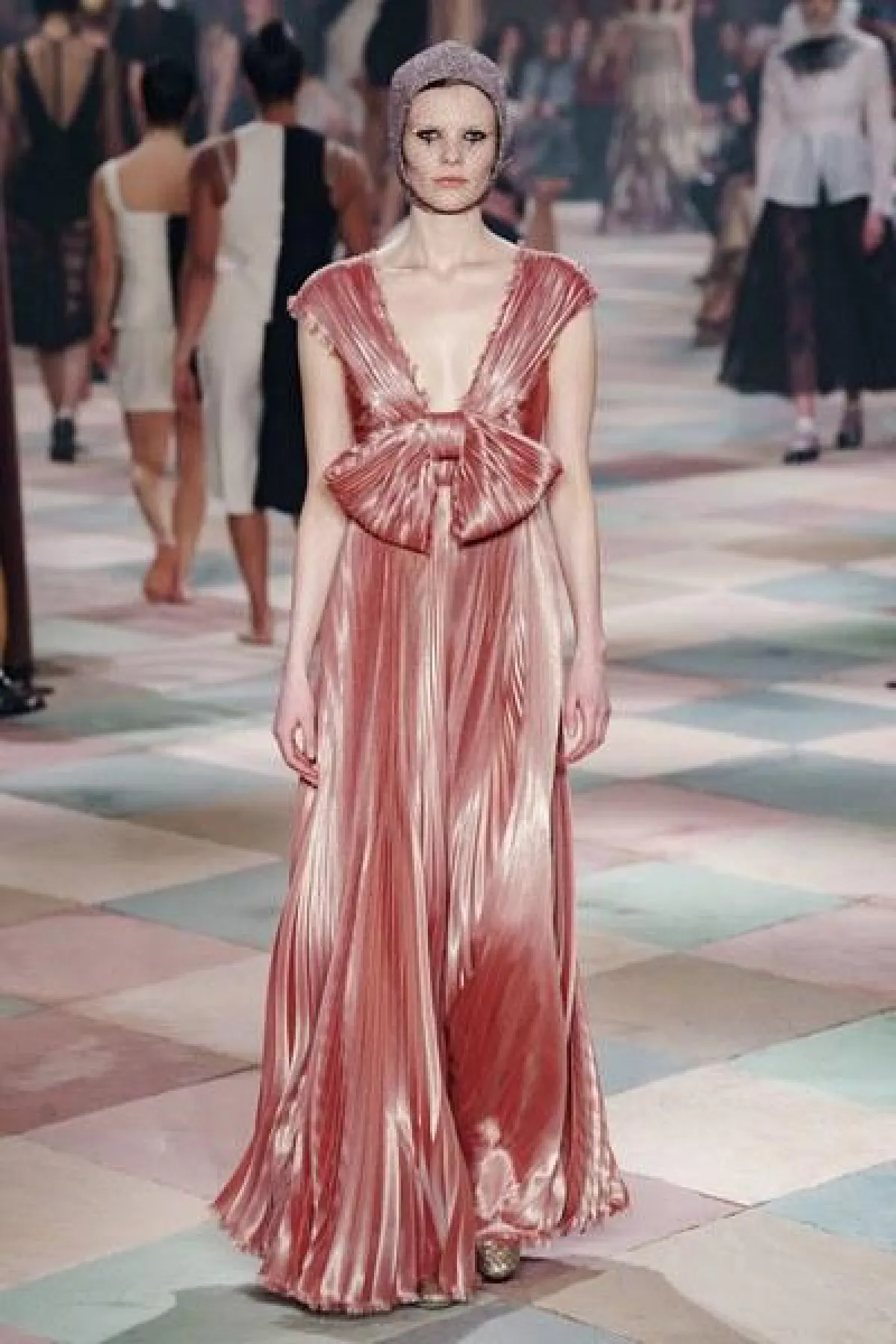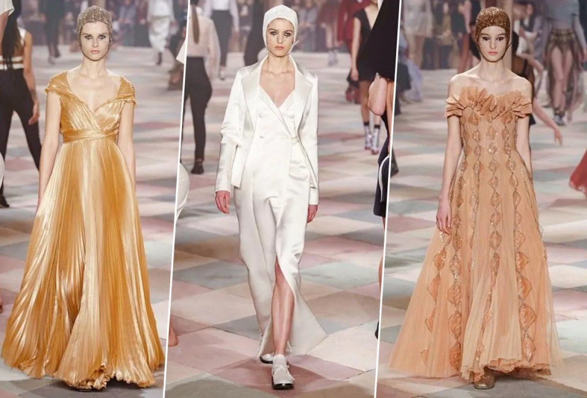 ورصدنا قماش الساتان على الفساتين الفخمة التي ظهرت على منصات سكياباريلي Schiaparelli، كريستيان ديور Christian Dior، وجمباتيستا فالي Giambattista Valli.