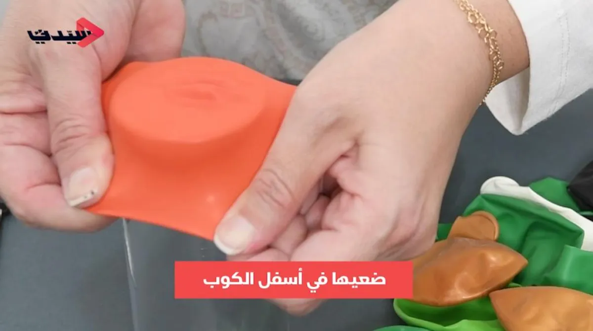 2. يُستخدم القسم السفلي من البالون في تغليف الكوب الزجاج من الأسفل. وبذا نضمن أن لا يخلِّف الكوب أي آثار، وألا ينكسر ويتحوَّل إلى زجاج منثور.
