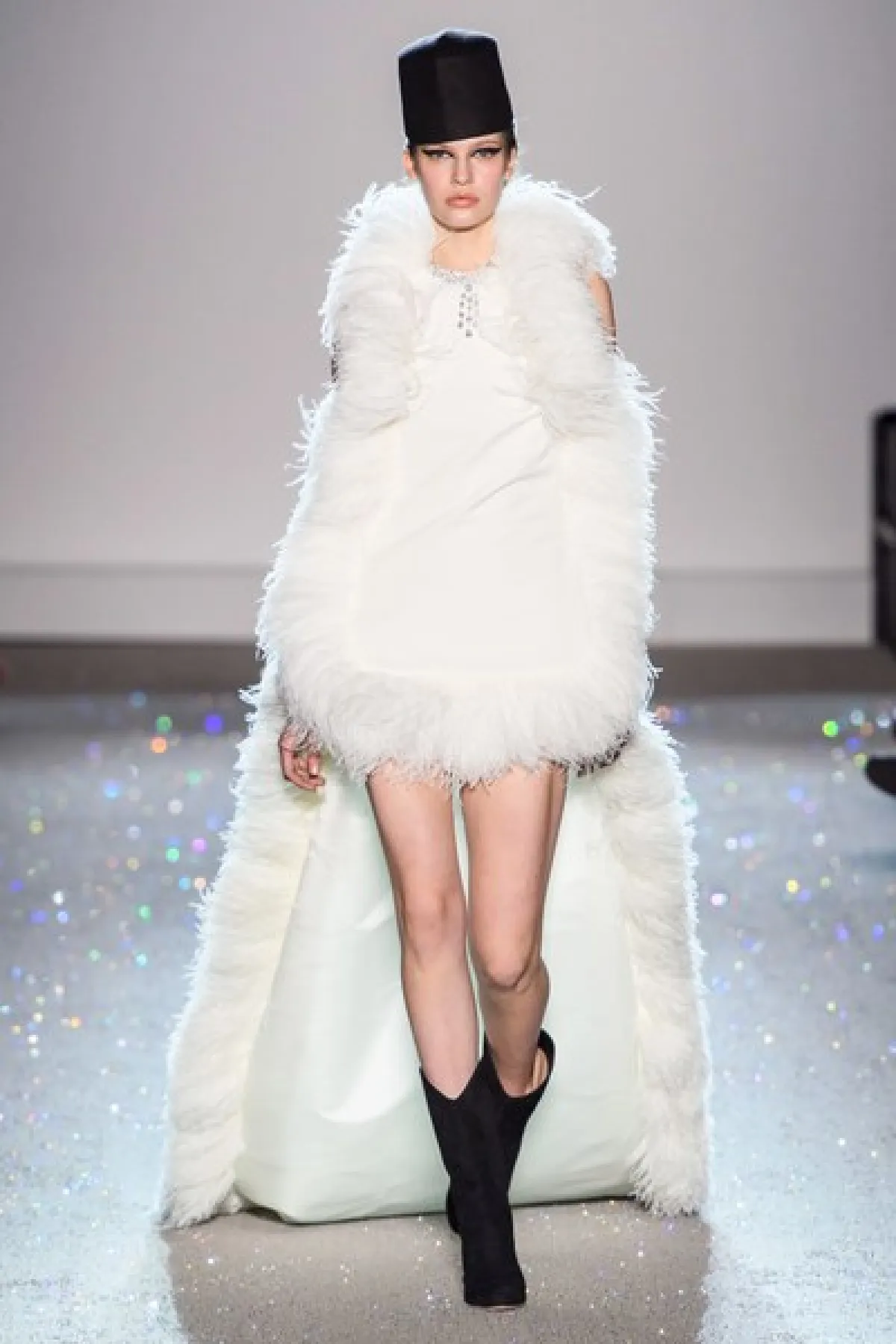 كما وبرز الريش أيضاً لدى جمباتيستا فالي Giambattista Valli من خلال تصميم لفستان سهرة قصير من الأمام وطويل من الخلف، باللون الأبيض النقيّ. فرأيناه على الحواف والأطراف .