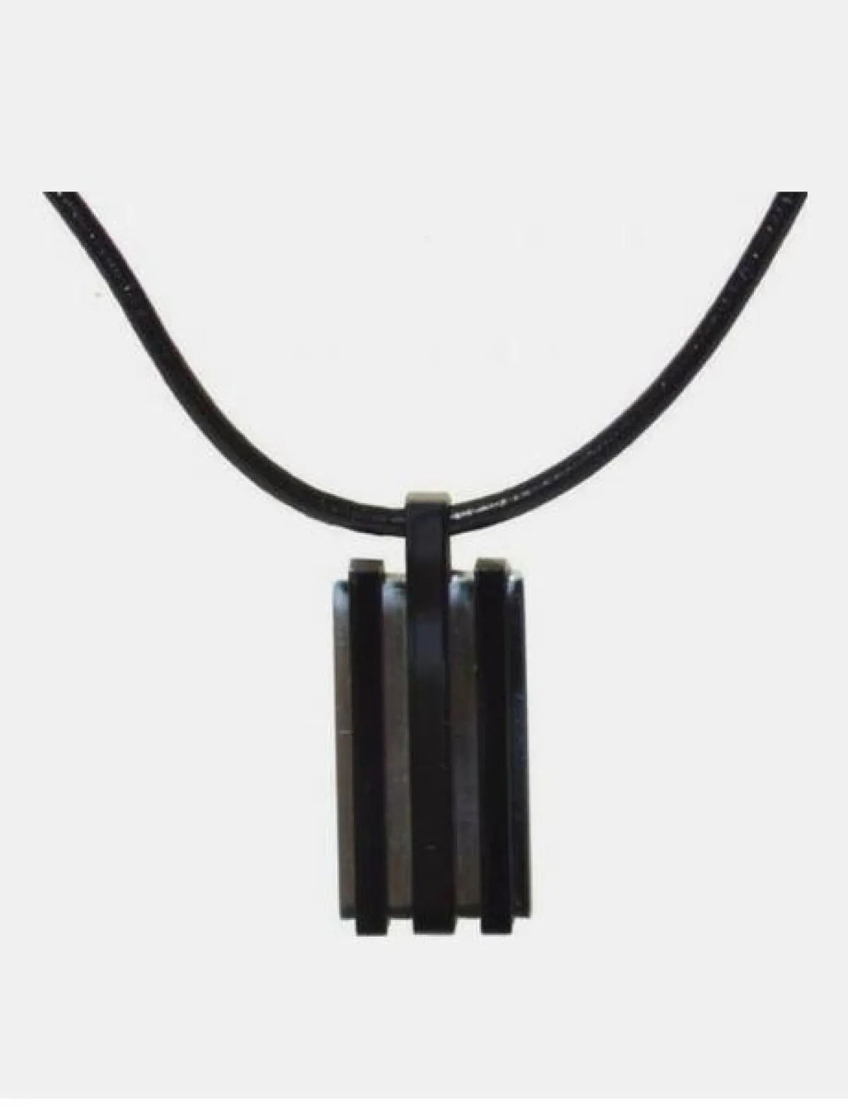3- باريو: سلسال مع تعليقة من الستانلس مخطّطة باللونين الأسود والفضي للرجال
