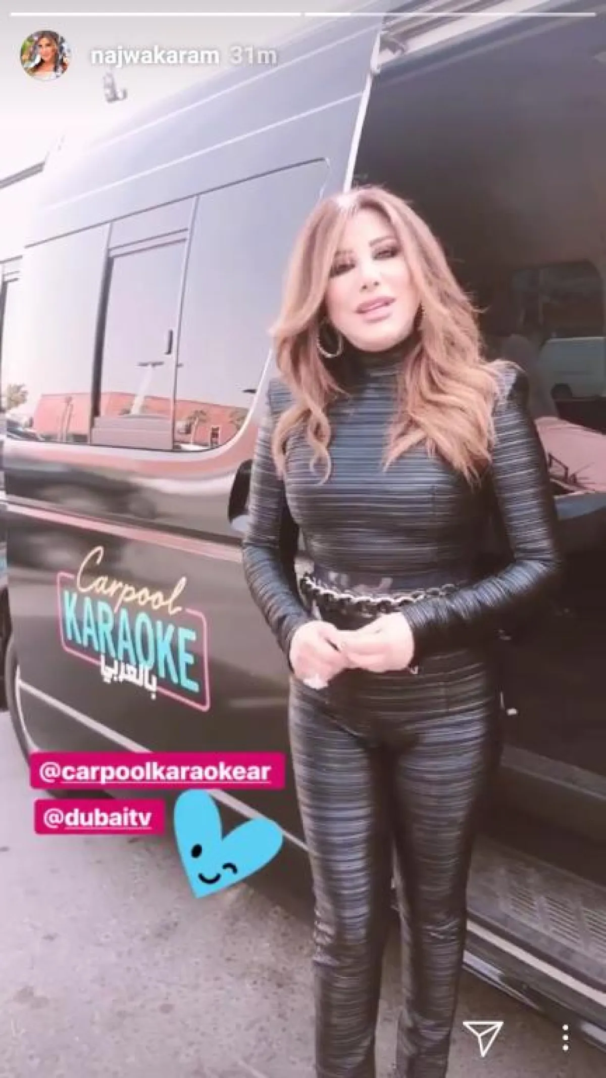 تتواجد الفنانة نجوى كرم حالياً في دبي، حيث باشرت بتصوير حلقة من برنامج "carpoolkaraoke" الذي يقدمه هشام الهويش على تلفزيون دبي.