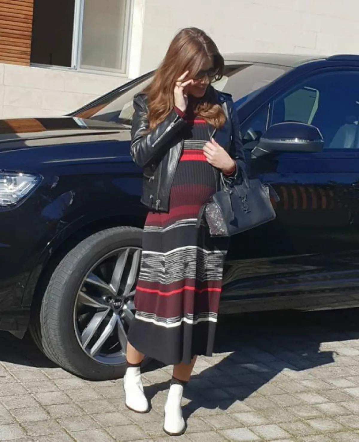 وبدت نانسي بكامل حيوتها ولياقتها وهي ترتدي فستاناً من الصوف عكس رشاقتها مع أنها أصبحت في الشهر التاسع من الحمل.