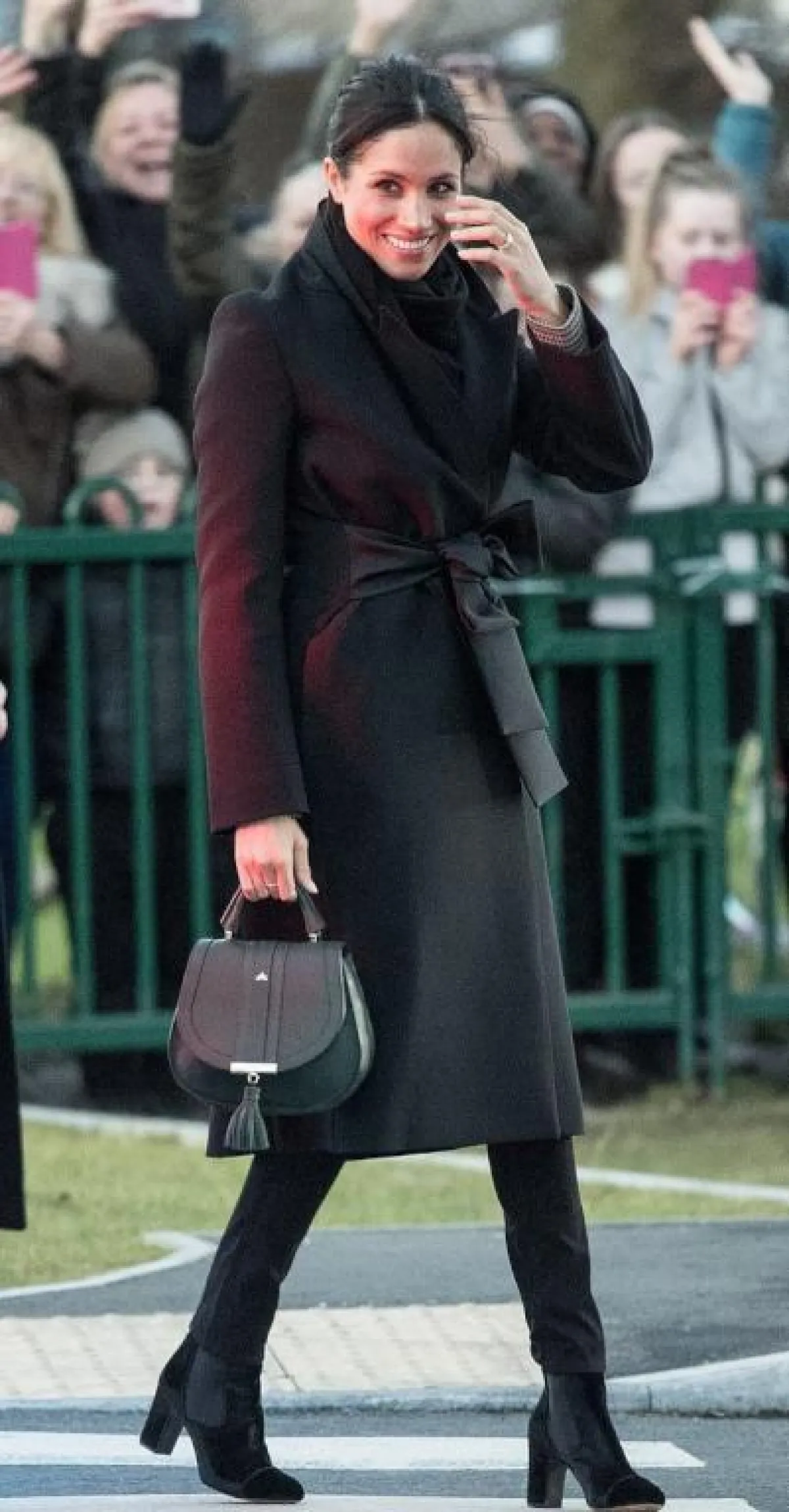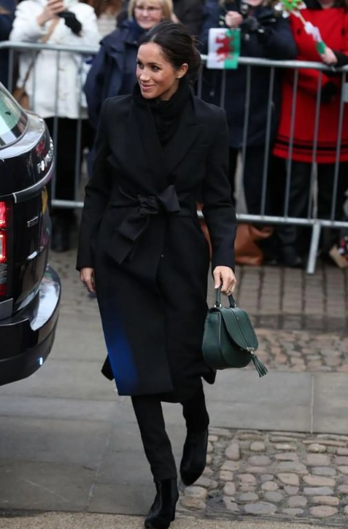 وكان اللافت في اطلالتها أنها حملت شنطة يد من تصميم DeMellier، كان قد سبق للدوقة ميغان ماركل أن حملتها.