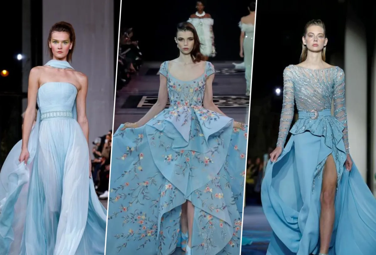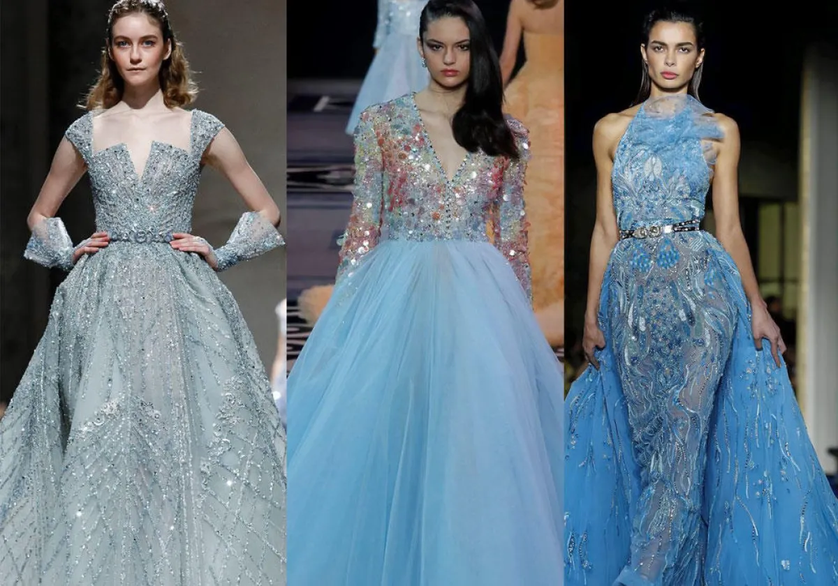 يعتبر اللون الأزرق من الألوان الملكية المفضلة للأميرات والنجمات، لما يتمتع به من سحر خاص وجاذبية، وقد ظهر اللون الأزرق في العديد من التصاميم خلال أسبوع الملابس الراقية لموسم ربيع وصيف 2019.