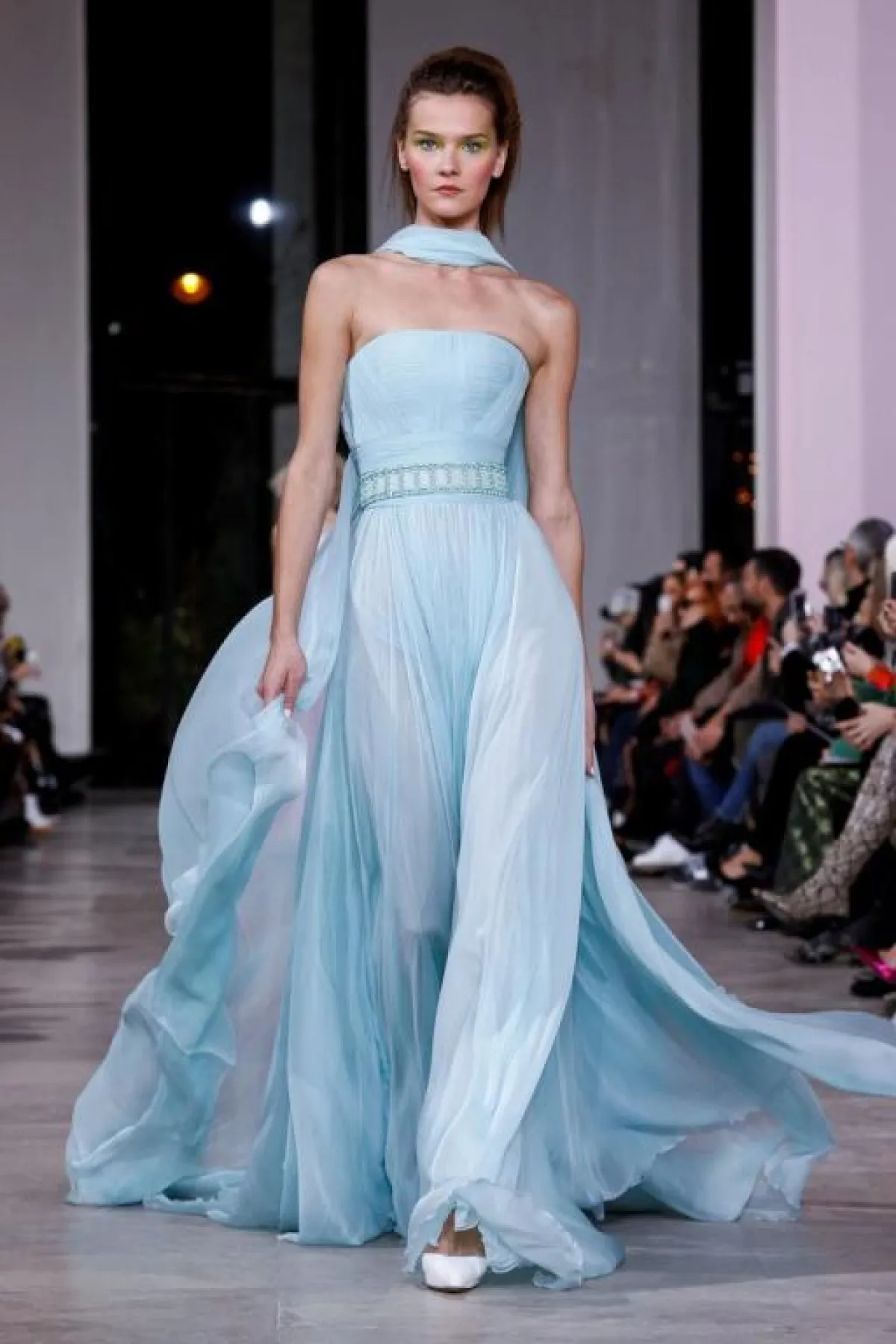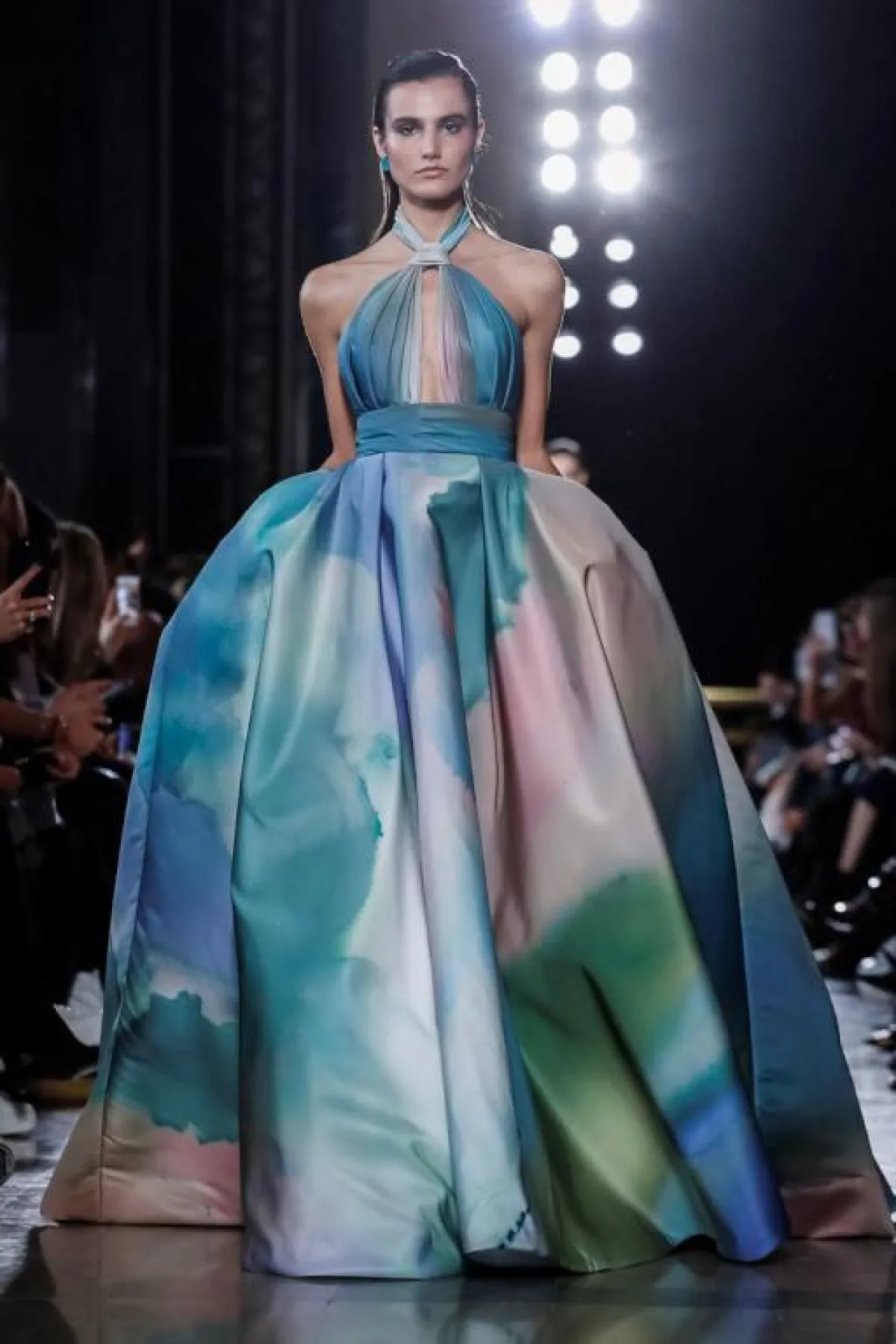 كما قدم المصمم اللبناني إيلي صعب Elie Saab فساتين زرقاء بدرجات مختلفة، مثل الفستان الذي يجمع بين الأزرق وبعض الألوان الأخرى مثل الوردي والأخضر في تناغم أخّاذ.