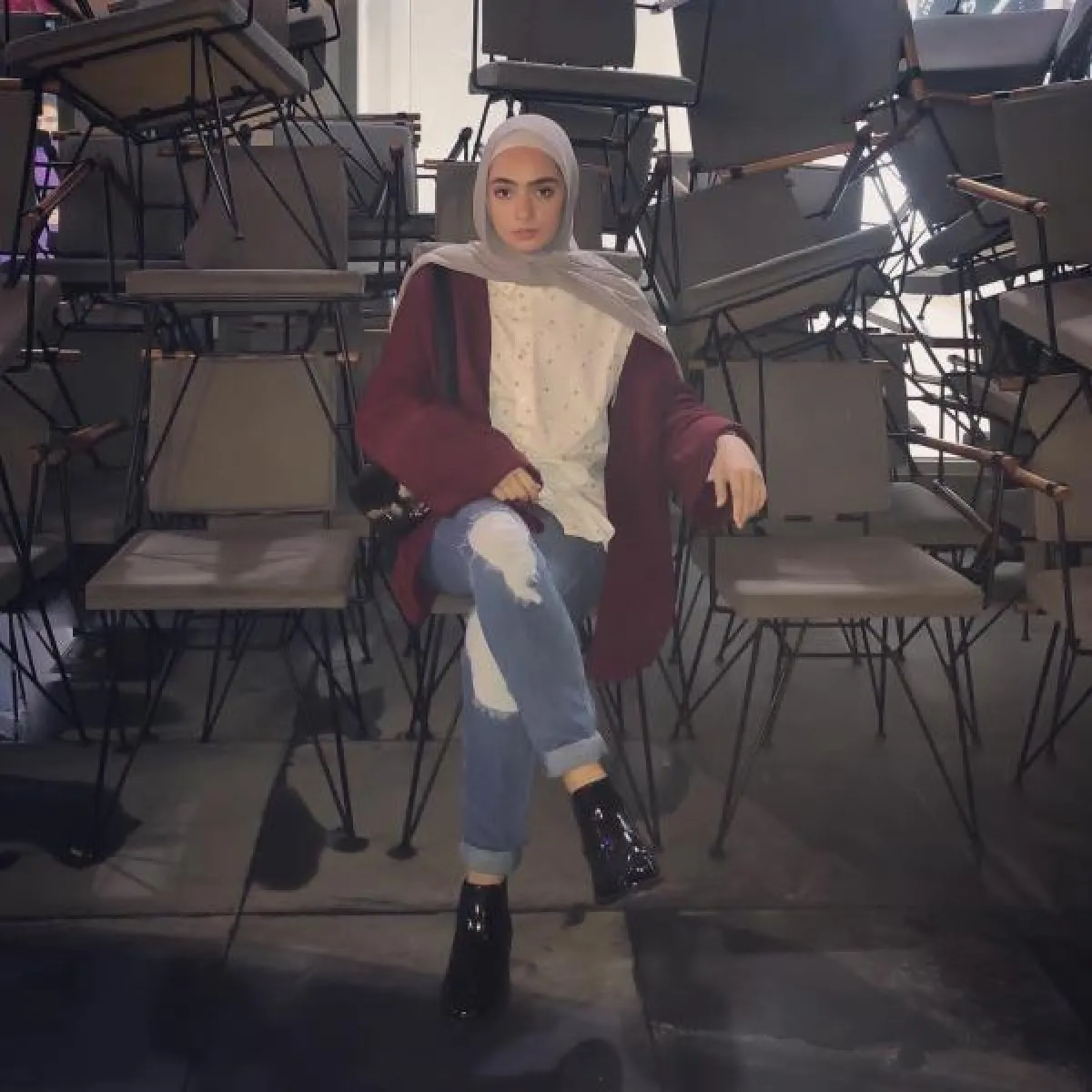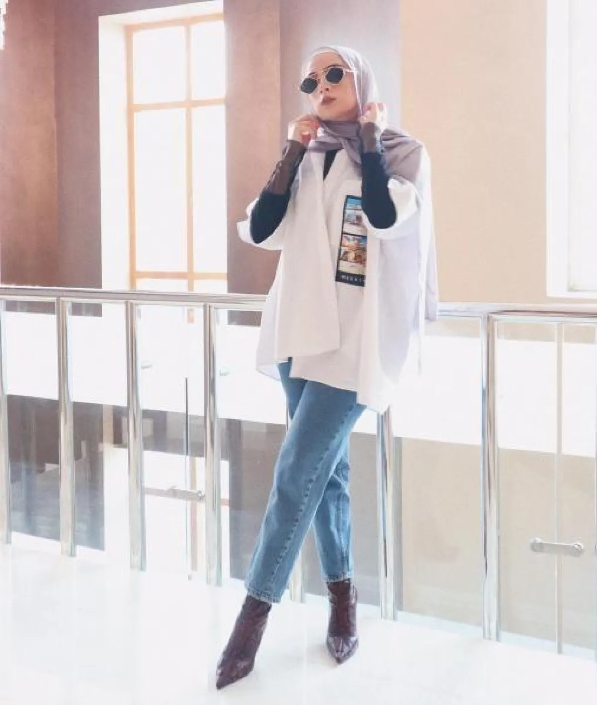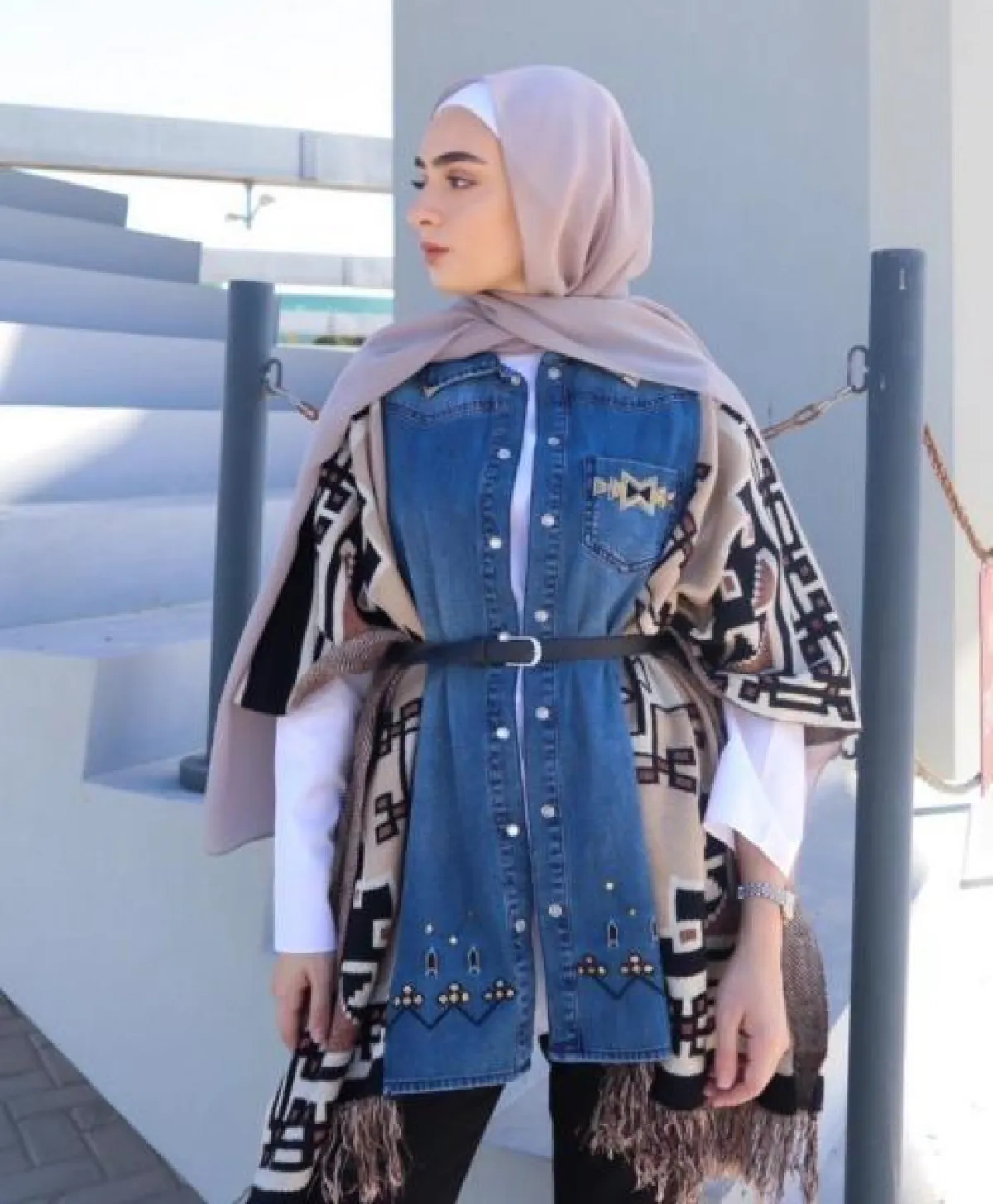 الشالات النسائية أيضاً، من الاكسسوارات التي تتناسب مع المحجبة، فقط نسقيها مع القميص الجينز لتحصلي على إطلالة شتوية رائعة.