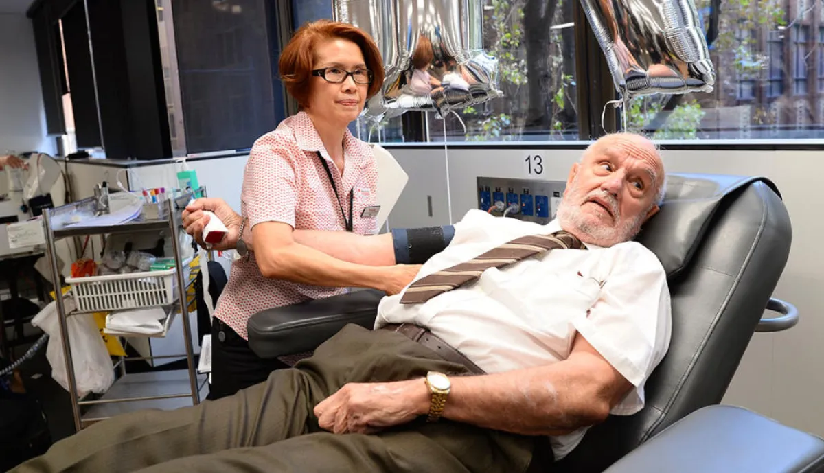 «هاريسون»، الرجل الأسترالي، في العقد الثامن من عمره، أطلق عليه العديدون حول العالم لقب «صاحب الذراع الذهبية»، وذلك اللقب المستحق عن جدارة، ليس فقط لطبيعة دمه النادرة التي أنقذت حياة ملايين الأطفال والأمهات، بل كونه صاحب رقم قياسي في التبرع بالدمّ، أو بشكل أدق بـ«بلازما الدم»، إذ إنه ومنذ ما يزيد على الـ63 عامًا، استمر بالتبرع لمرة واحدة كل أسبوعين، حتى وصل عدد المرات التي تبرع فيها «هاريسون» بالدم طوال هذه المدة إلى 1173 مرة، الأمر الذي جعله يدخل موسوعة «غينيس» للأرقام القياسية، كأكثر شخص تبرع بالدم في العالم.