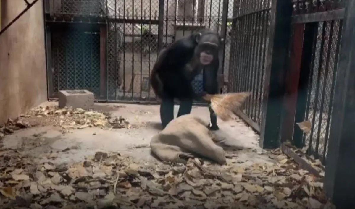 وبحسب ما ذكره موقع "روسيا اليوم" نقلاً عن صحيفة الـ"ديلي ميل" البريطانية، بأن أنثى الشمبانزي التي يطلق عليها اسم "مي سو"، التي يصل طولها إلى حوالي المتر الواحد، بارعة جداً في تقليد عمل موظفي حديقة الحيوانات التي تعيش فيها، من خلال قيامها بتظيف قفصها من الفضلات وأوراق الشجر بشكل متقن للغاية، فيكفي أن يُعطى لـ"مي سو" مقشة حتى تقوم بكنس وتنظيف منزلها على الفور.