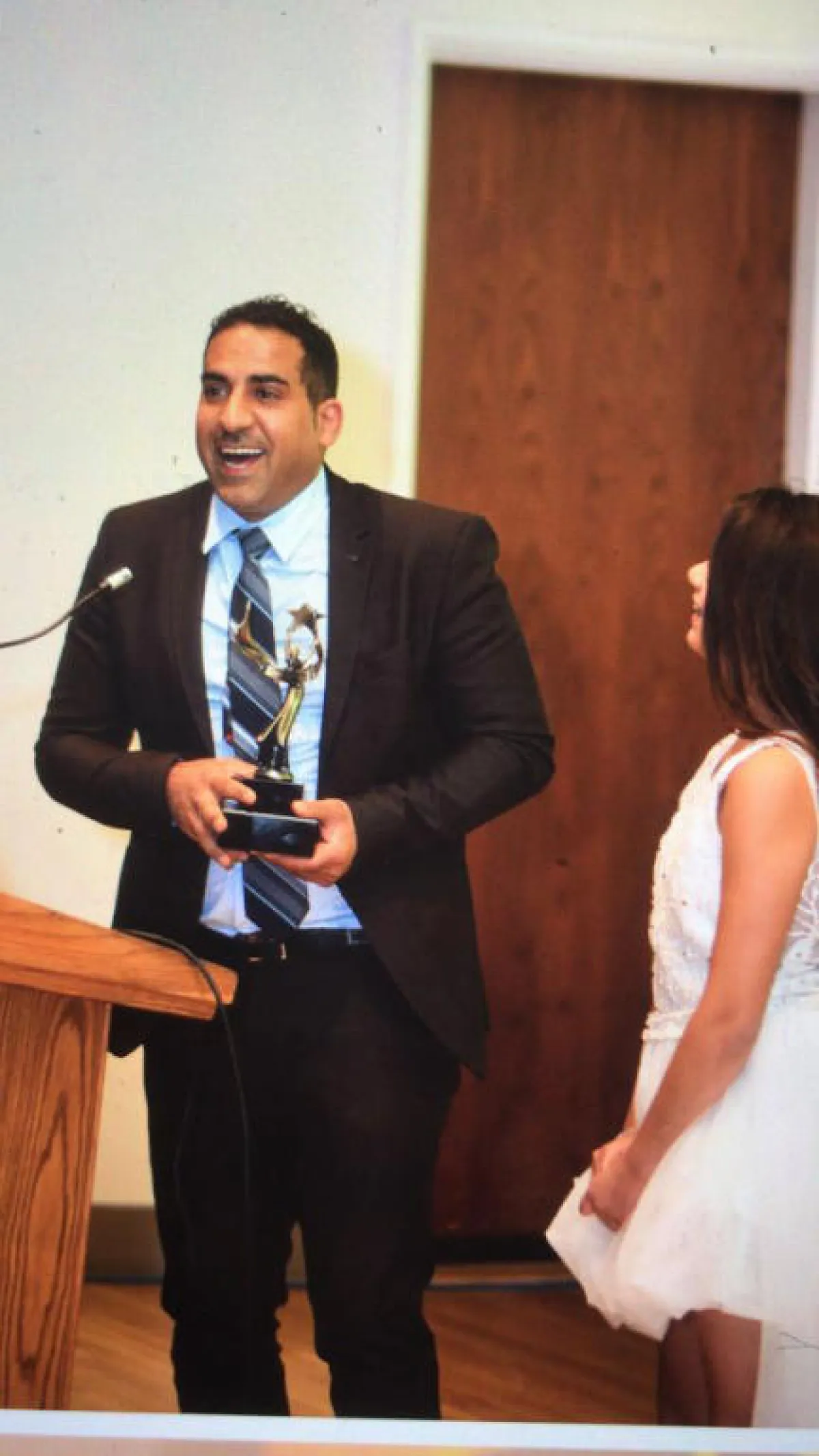 * "سيدتي نت" سأله عن اسم السيدة التي تسلمه الجائزة فقال: