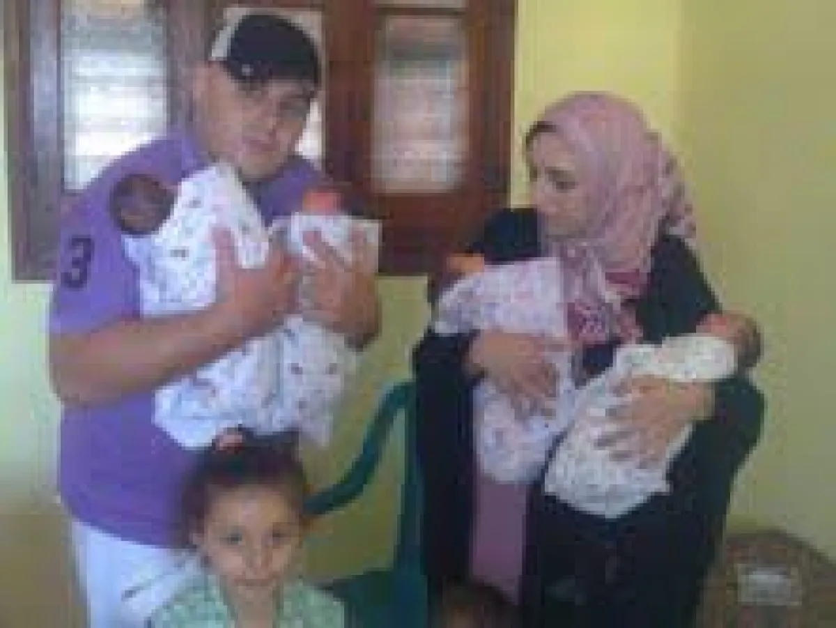 نعمة أصبحت أما لأحد عشر طفلاً، وبما أن حماتها قد وضعت طفلاً قبل شهرين من ولادة نعمة للتوائم الخمسة، فهي تساعدها في إرضاعهم رضاعة طبيعية، لعدم استطاعتها توفير الحليب الصناعي لهم.