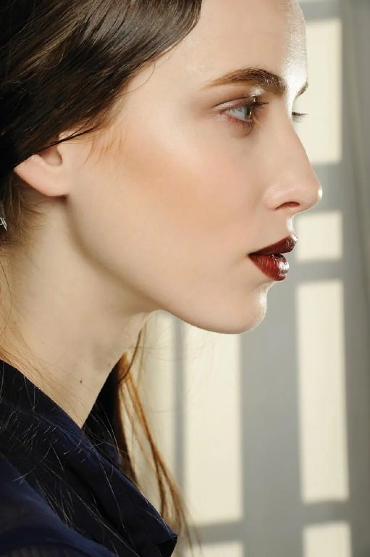 وموضة هذا الخريف الخاصّة بالشفاه هي الأحمر الداكن، ليزيد المرأة دفئاً وجمالاً.