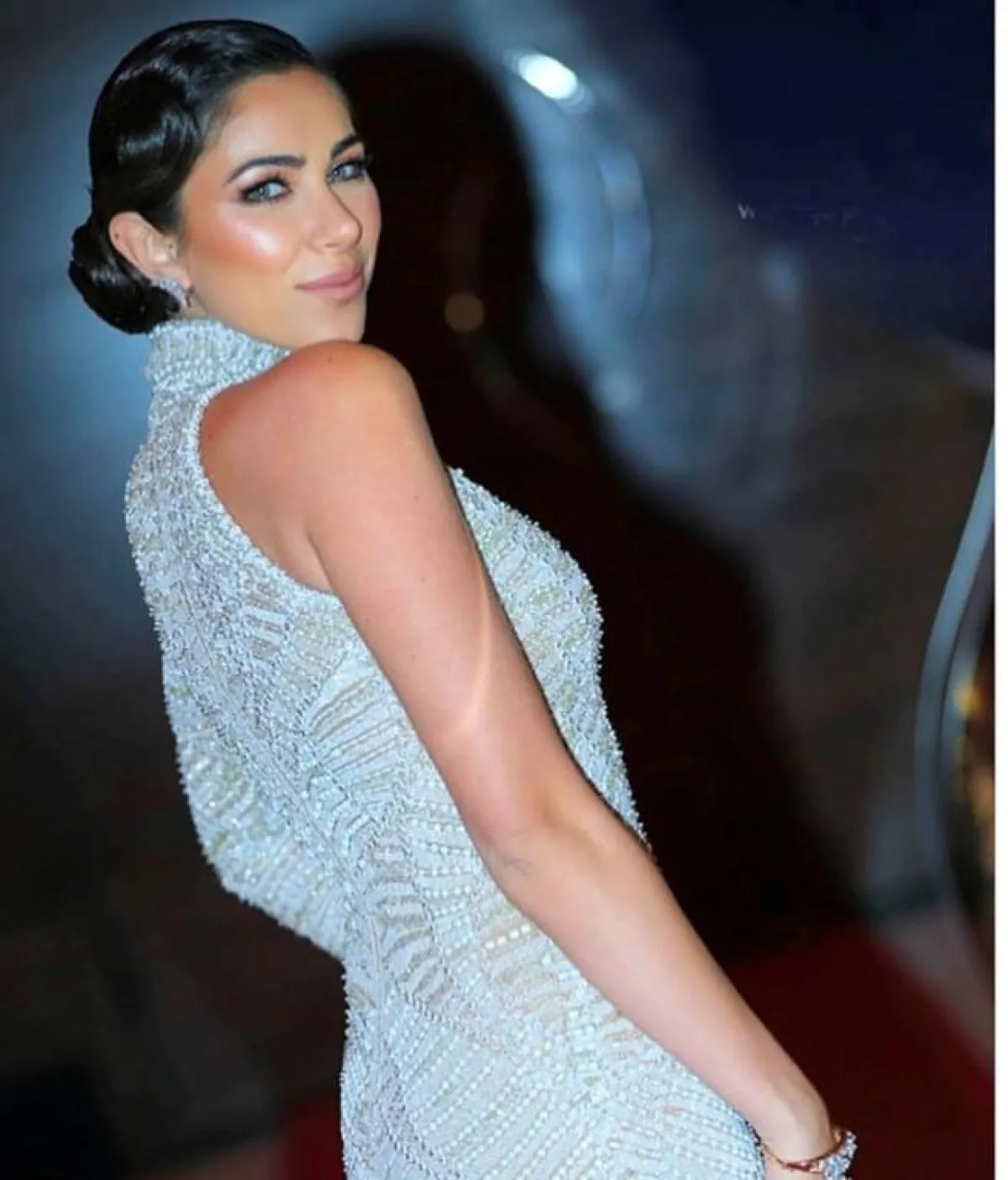 وتميز الفستان بالياقة العالية وقصة الكتف الواحد، إضافة إلى الفتحة الطويلة، حيث أظهر جمال وأنوثة دانييلا بشكل لافت.