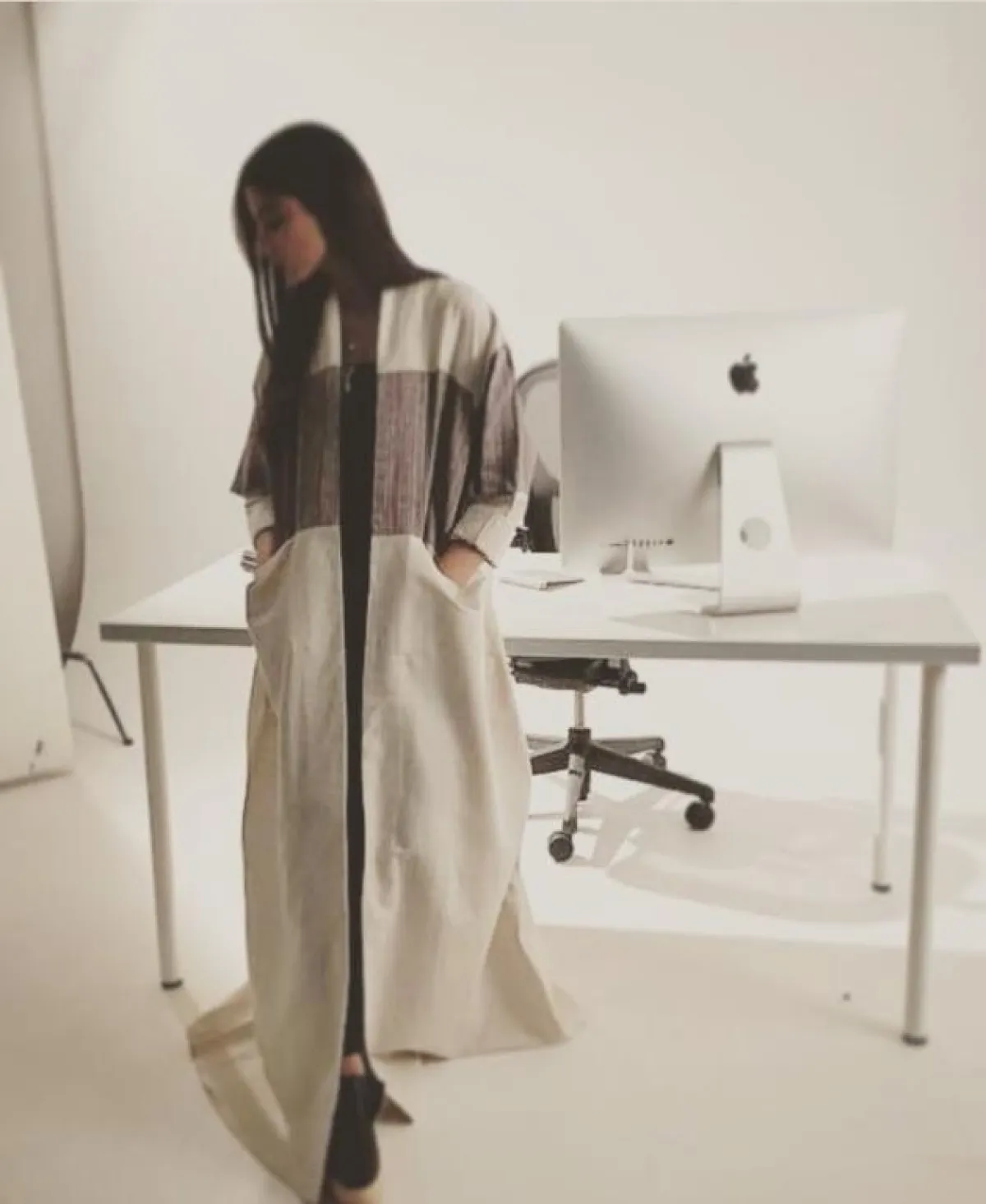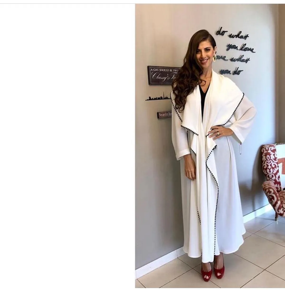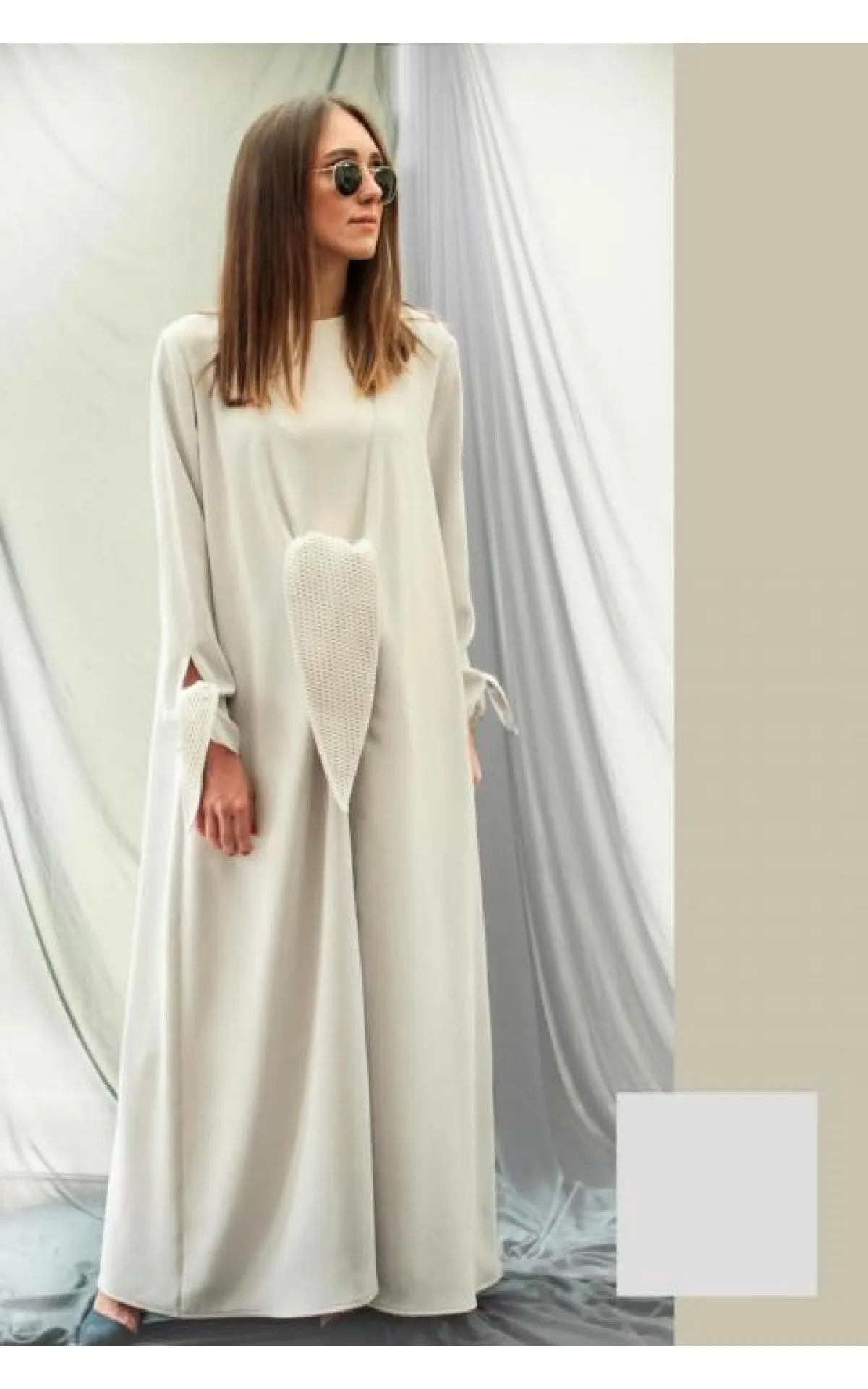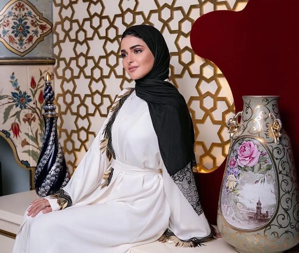 الخامات المخملية تم دمجها بطريقة ذكية مع العباية البيضاء من Seasonal Abaya سيزونال عبايه، بأكتاف كحلية اللون، منسدلة من الصدر بخامة الكتان البيضاء الرمادية، تناسب كل أعمار الصبايا بخاصة العشرينيات، ويمكن لصاحبات الوزن المتوسط ارتداؤها بهذا الشكل، من دون أن تُبرز أيّ عيوب للجسم.