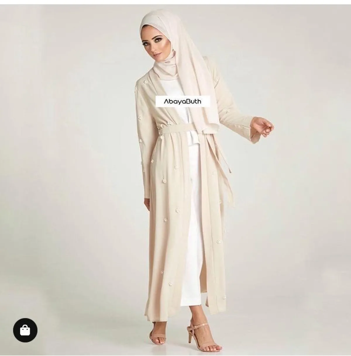 أما العباية من Modgrey مودجري، فهي أكثر شبابية بتصميمها البسيط، وهذه اللمسة بسيطة عند المنتصف، والأكمام المربوطة، اختاريها مع حجاب أبيض وباندا بيج، وشنطة مخملية متوسطة الحجم، والسنيكرز هنا سيكون خيارًا عصريًّا جدًّا.