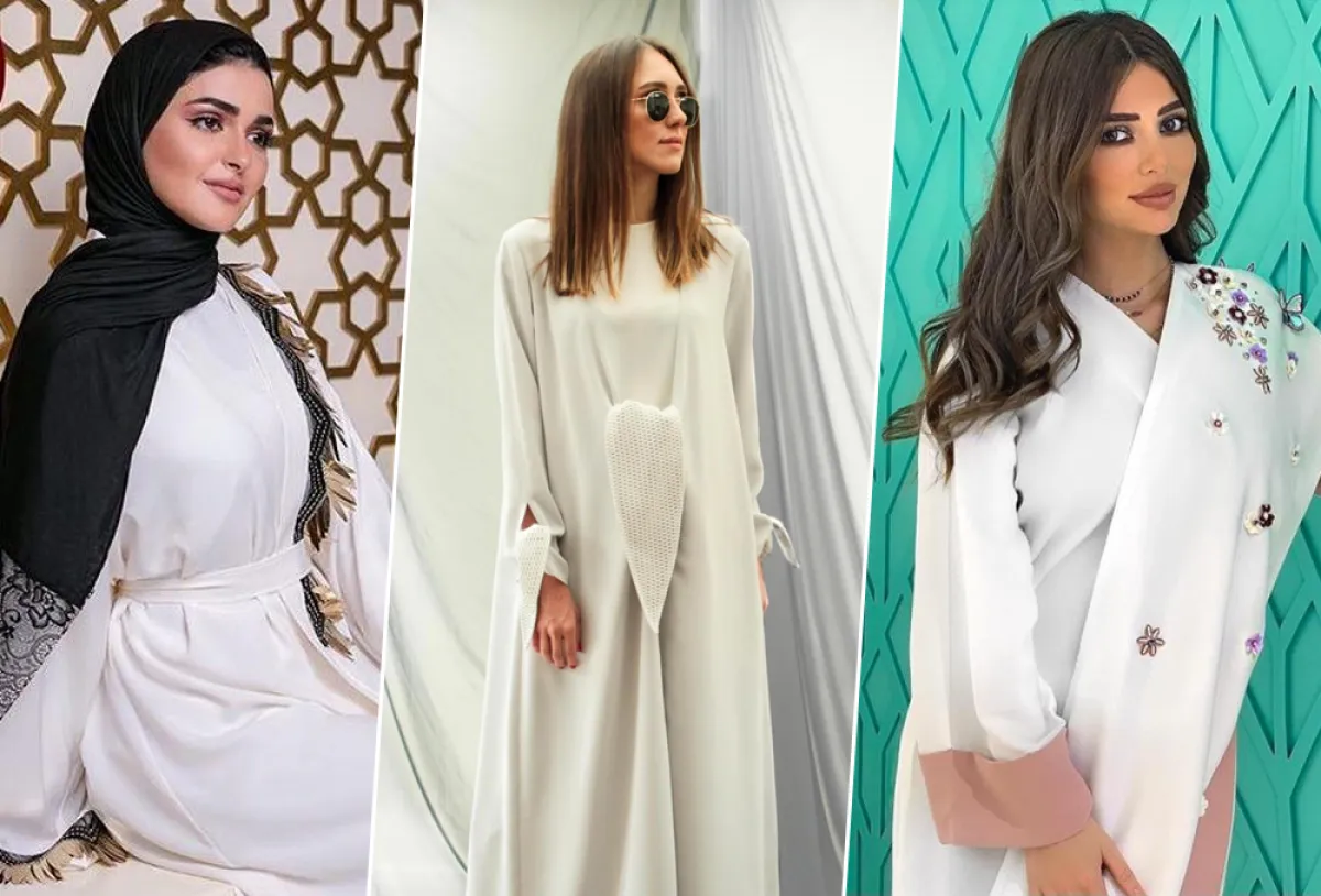 العبايات باللون الأبيض بدرجاته المختلفة، عادةً ما تستهوي الصبايا محبات البساطة والهدوء، فهذا اللون بالإضافة إلى أنه عصري ورائج هذه السنوات بشكل كبير، لكنه أيضًا يضيف لمسة مخملية ناعمة للصبيّة، لهذا لم نعد نستغرب أن نجده بشكل كبير في موديلات العبايات.