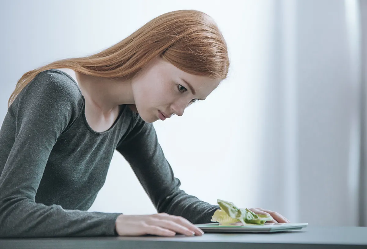 *تظهر الحالة في شكل رفض تناول الطعام ومقاومته بشتى الطرق والحيل، ويتزايد لدى الإناث أكثر من الذكور؛ نظراً لانشغال الأنثى بصورة الجسم خاصة في سن المراهقة.