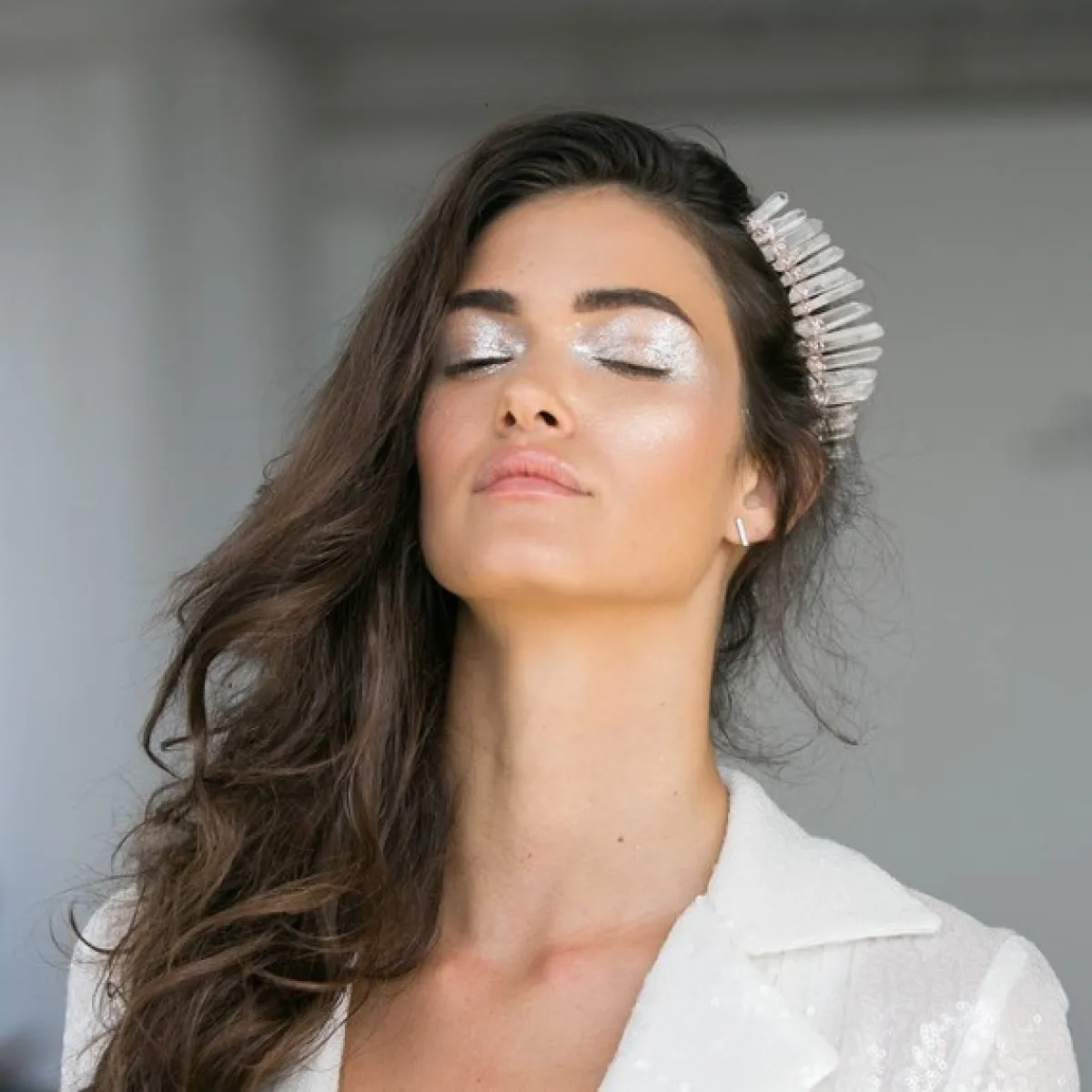 لـ عروس الشتاء، الظلال الفضيّة على العينين ستمنح إطلالتكِ لمسة من الدفء والإشراقة، ولمزيد من الجرأة، انثري القليل من الجليتر الفضيّ البرّاق على خطّ الآيلاينر أو أسفل خطّ الرموش.