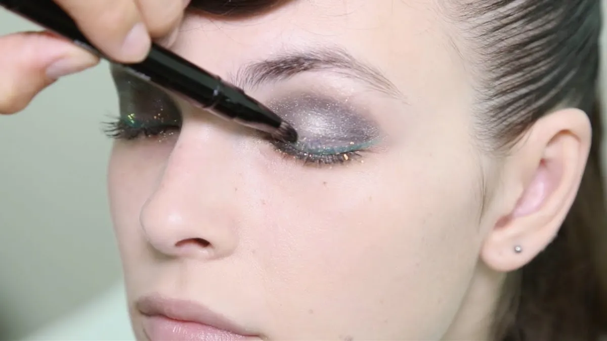 •خطّطي عينيكِ بـ أيلاينر الأسود لابراز جمال الظلال الفضيّة أو اختاري الغليتر البرّاق فوق خطّ الآيلاينر الأسود لمزيد من السحر بأسلوب مواكب للموضة.