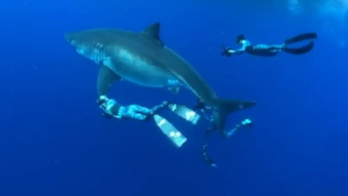 مغامرة تضخ الـ«أدرينالين» في عروق الجسد بكميات هائلة؛ فالشخص الذي قد يفكر بخوضها، سيكون على بعد سنتيمترات فقط من الموت، أو من تجربة لن ينساها مهما عاش من العمر، وستظل حكاية تروى للأحفاد، ولأحفادهم أيضاً، هذا ربما ما كان يفكر به كل من «أوشن رامسي»، و«خوان أوليفانت»، الغواصان المختصان بالحياة البحرية، وعلى وجه التحديد، حياة أسماك القرش، وذلك عندما تصادفا مع أشرس وأضخم هذه الأسماك على الإطلاق.