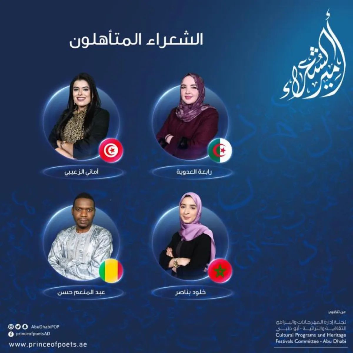 ووفقا للجنة انطلقت مساء أمس الثلاثاء من مسرح شاطئ الراحة في أبوظبي، أولى حلقات البث المباشر من برنامج "أمير الشعراء"، الذي تنتجه اللجنة "في إطار استراتيجيتها الثقافية الهادفة لصون التراث الثقافي وتعزيز الاهتمام بالأدب والشعر العربي".