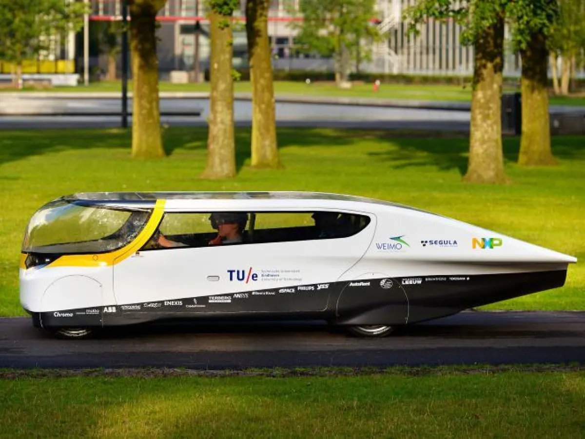 تمكن طلاب جامعة أيندهوفن للتكنولوجيا من اختراع سيارة عائلية تتسع لأربعة أشخاص وتعمل بالطاقة الشمسية.