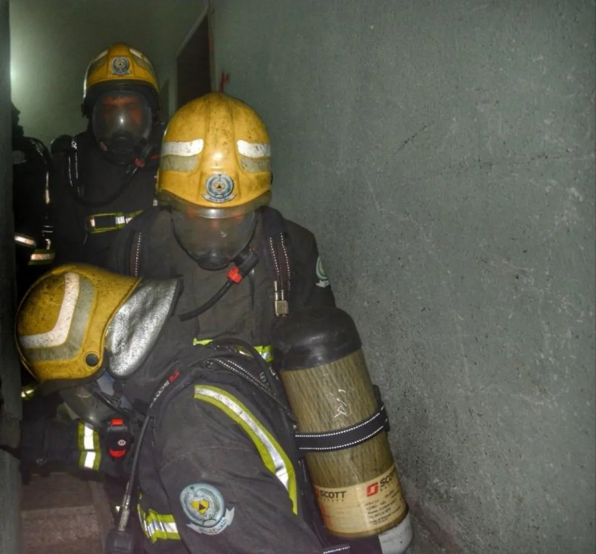 وتابع "مع وصول فرق الإطفاء والإنقاذ والآليات المساندة لموقع الحادث شرعت فرق الإنقاذ في عمليات إخلاء البناية بالكامل إلى سطح ومناطق آمنة خارج نطاق البناية، وأثناء أعمالها في التمشيط داخل أروقة الشقق بالأدوار العلوية للدور