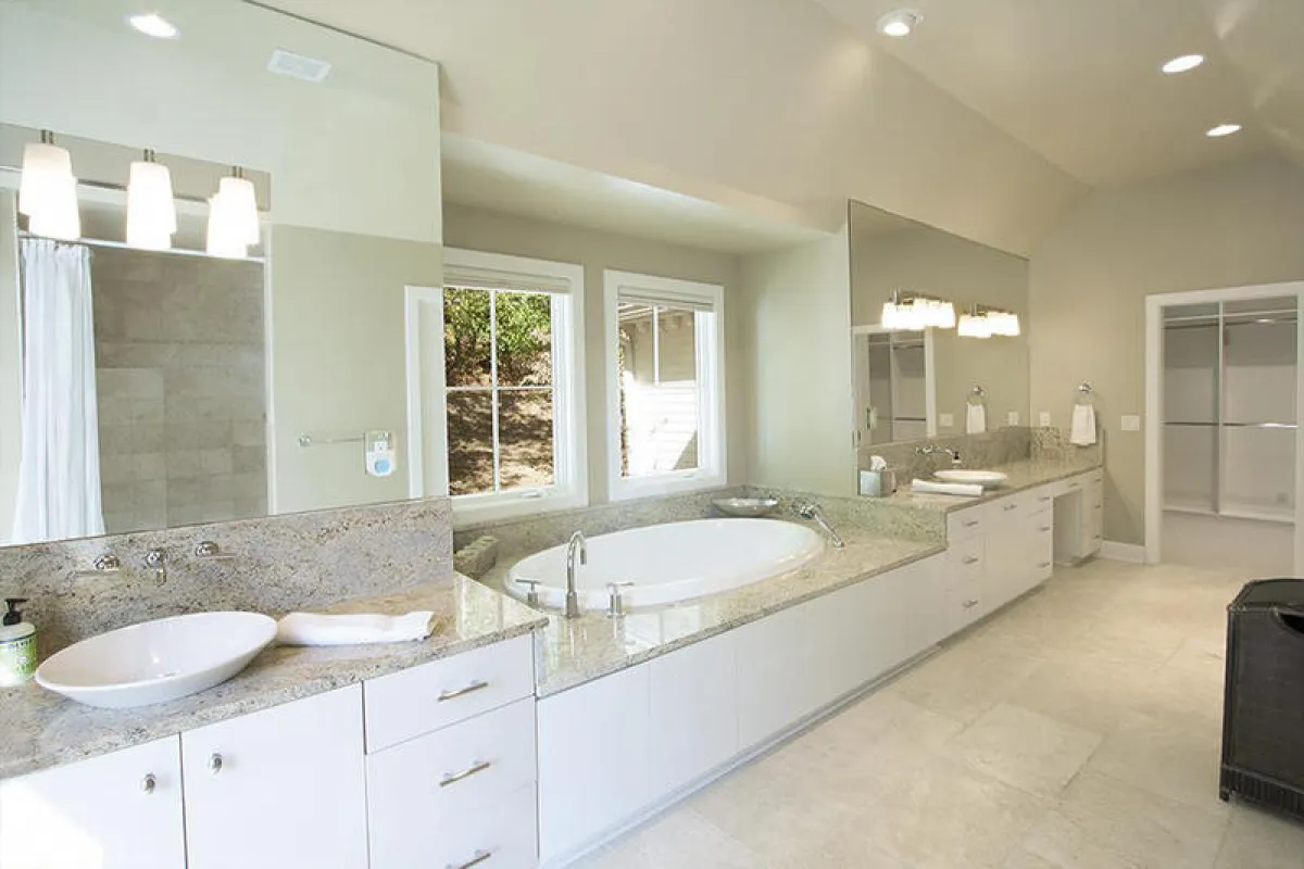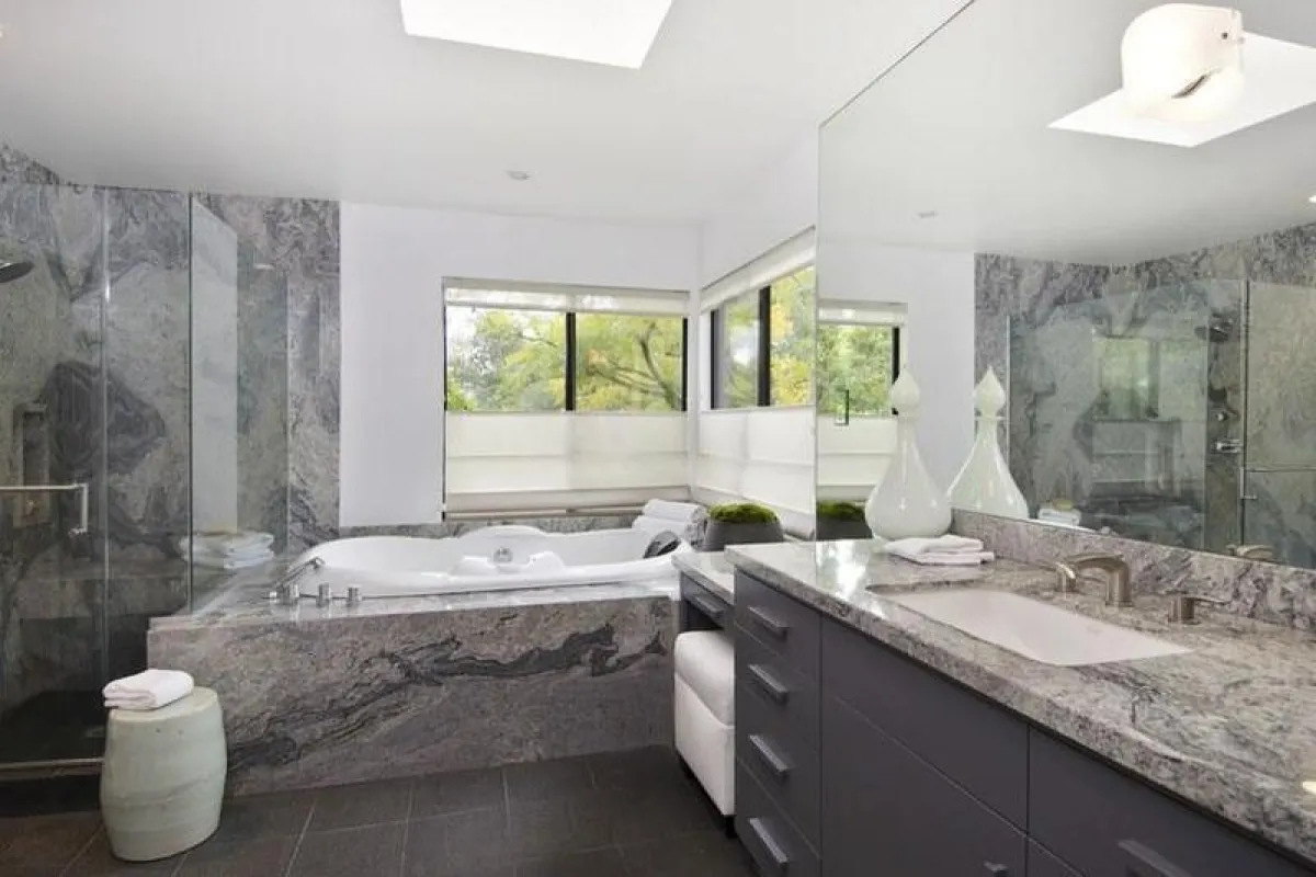 في منزل المُمثِّلة الأُسترالية نيكول كيدمان Nicole Kidman الواقع في ولاية "تينيسي" بجنوب إنجلترا، يضمُّ الحمام الرئيس المطلي بالأبيض حوضين للغسل، يفصل بينهما حوض الاستحمام المدمج. ولأعمال الرخام جاذبيَّة في هذا الحيِّز.