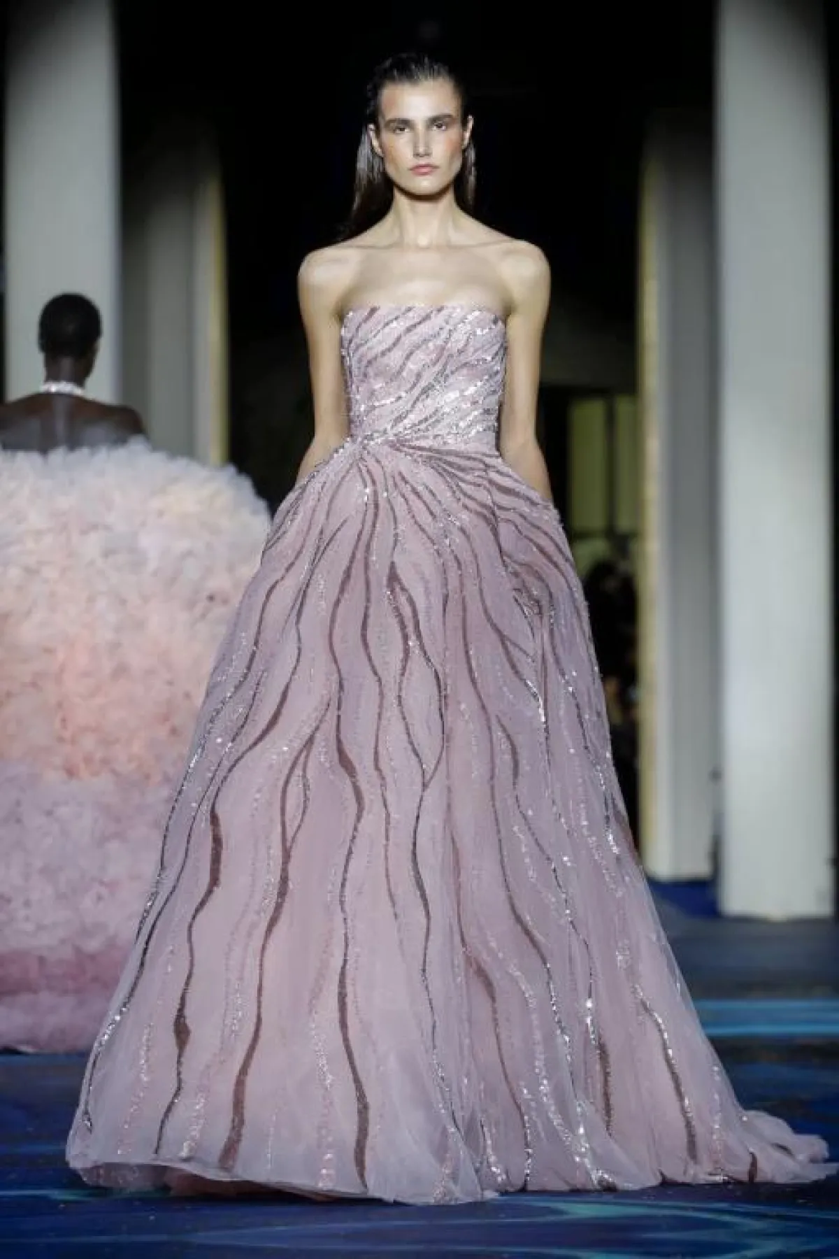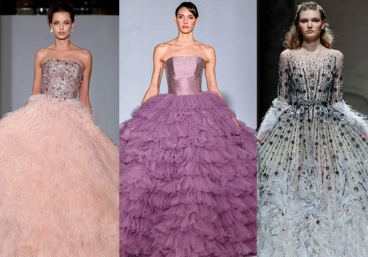وبرزت العديد من الفساتين المنفوشة بالألوان الناعمة مثل الفساتين الوردي من زهير مراد Zuhair Murad وجورج شقرا Georges Chakra.